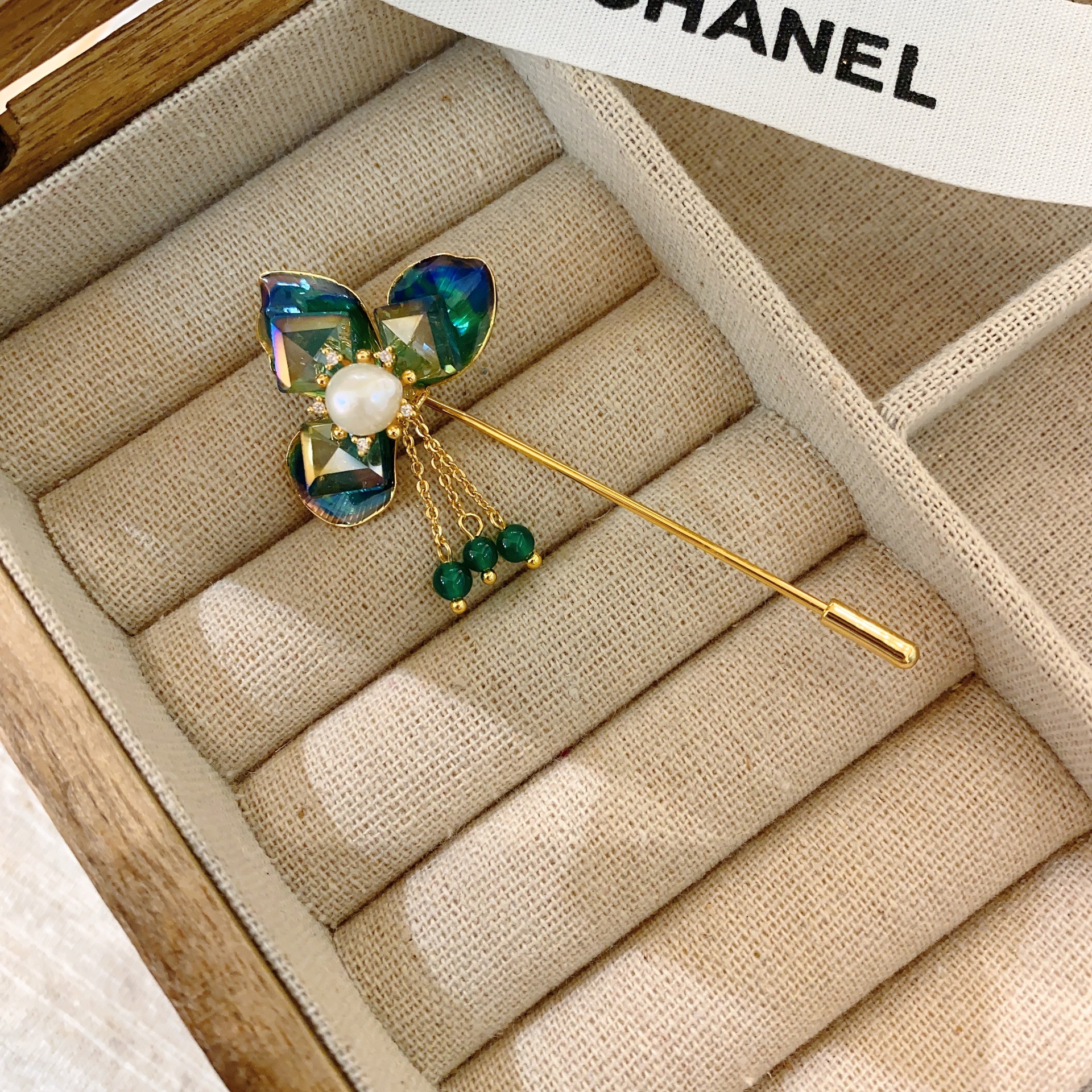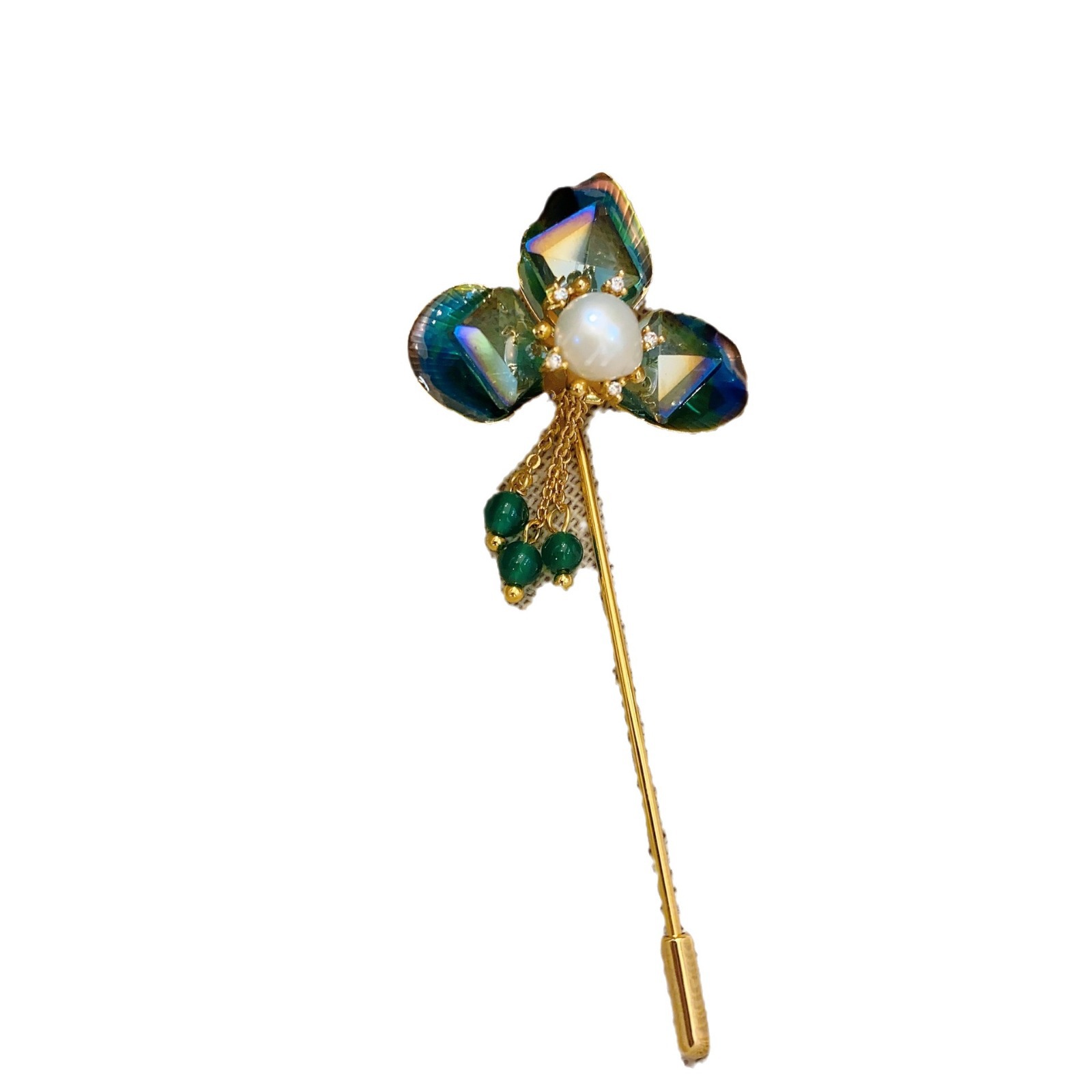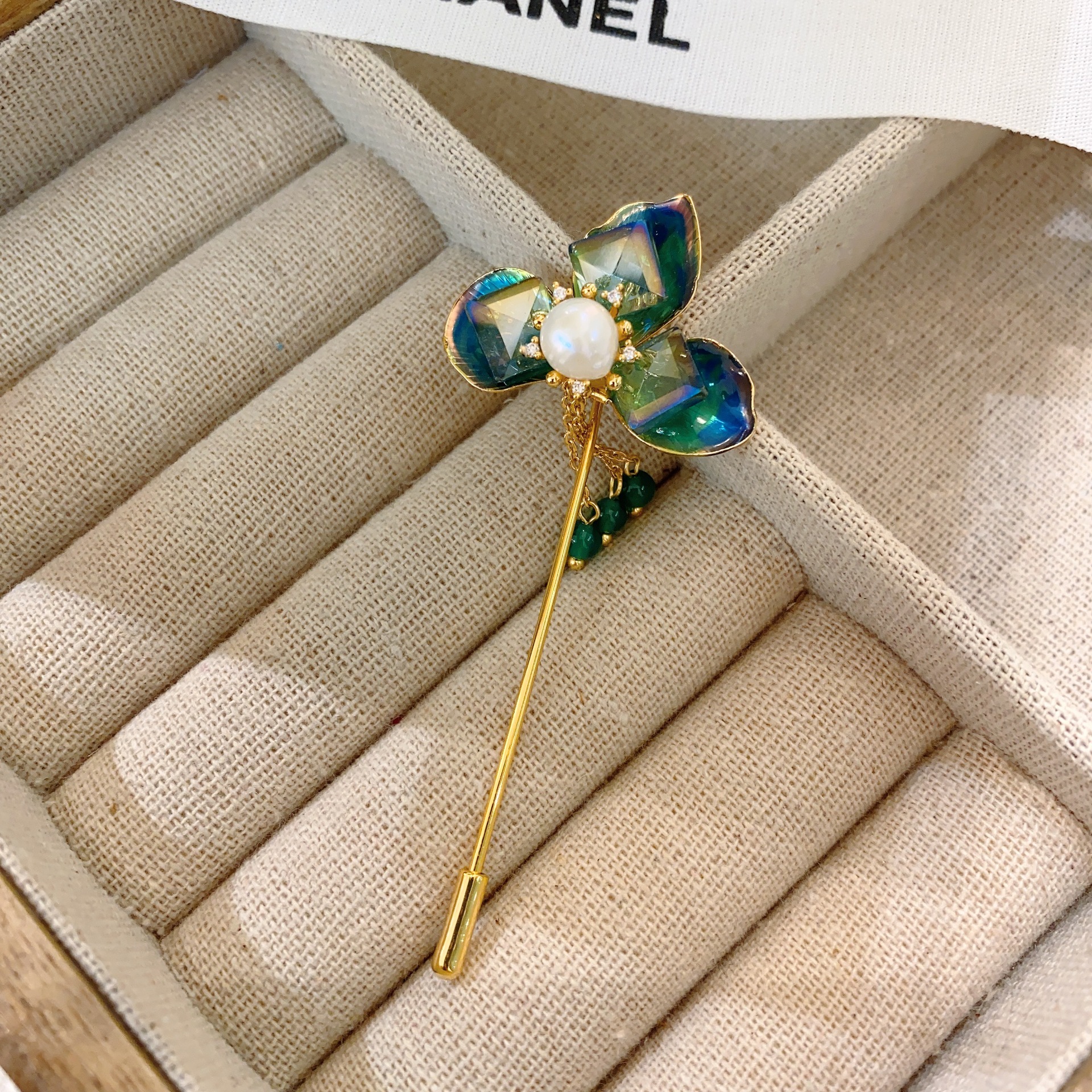 | nameOriginal | Elegant non-hurt clothes iron-absorbing stone anti-exposure natural pearl green crystal flower brooch women's coat accessories |