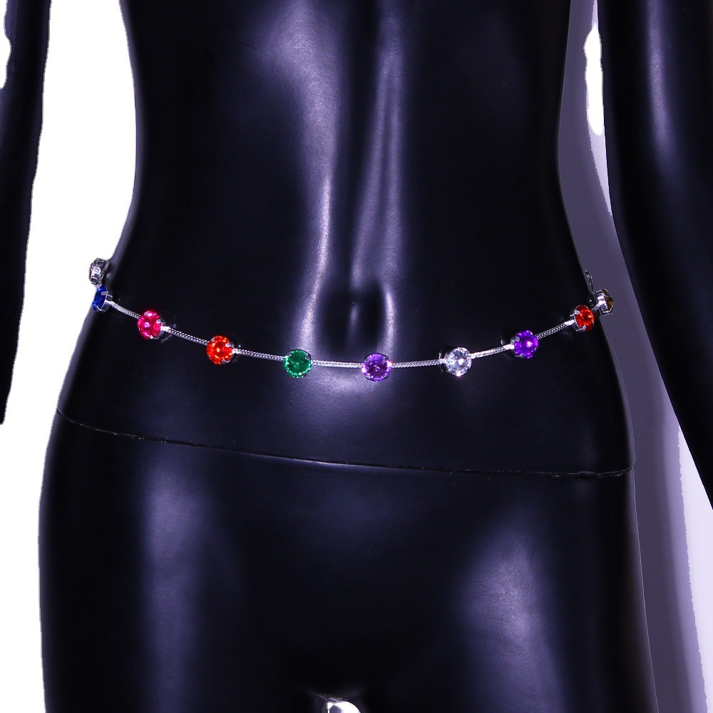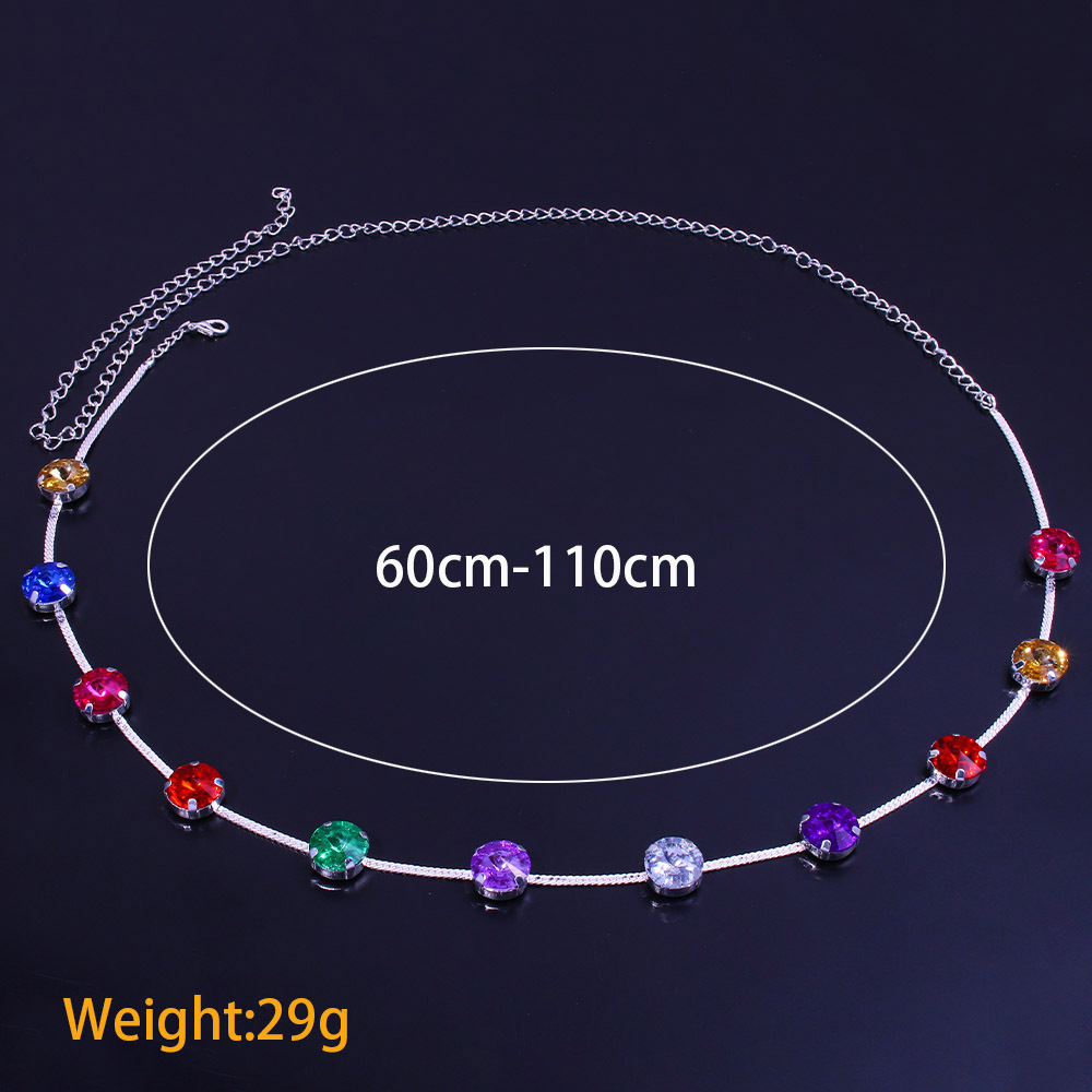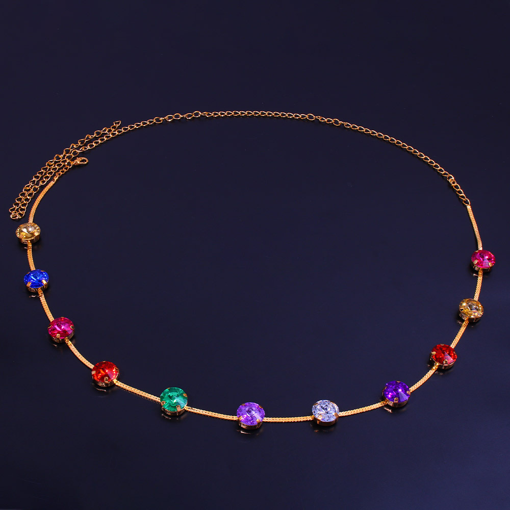 | nameOriginal | Creative colored diamond copper chain single-layer waist chain female sweet cool geometric round chain body chain European and American cross-border jewelry |