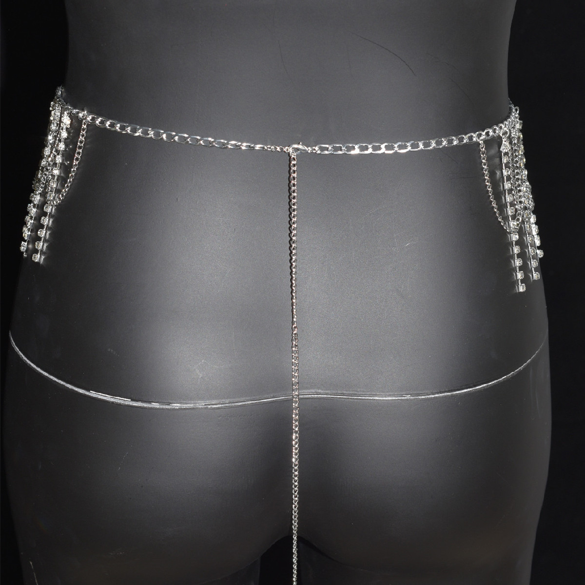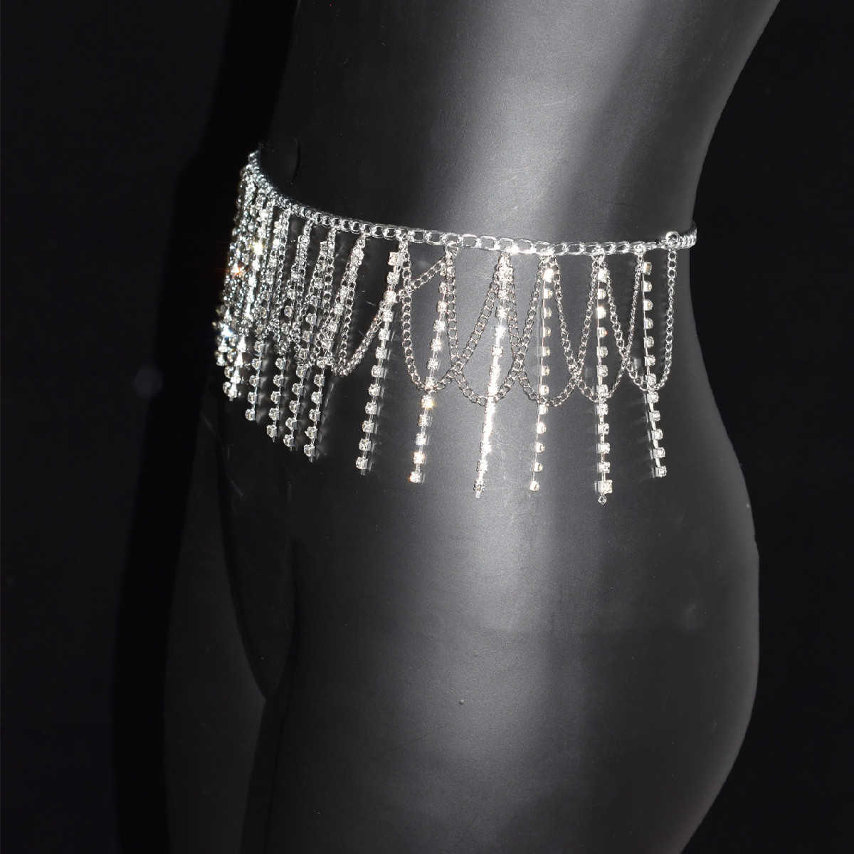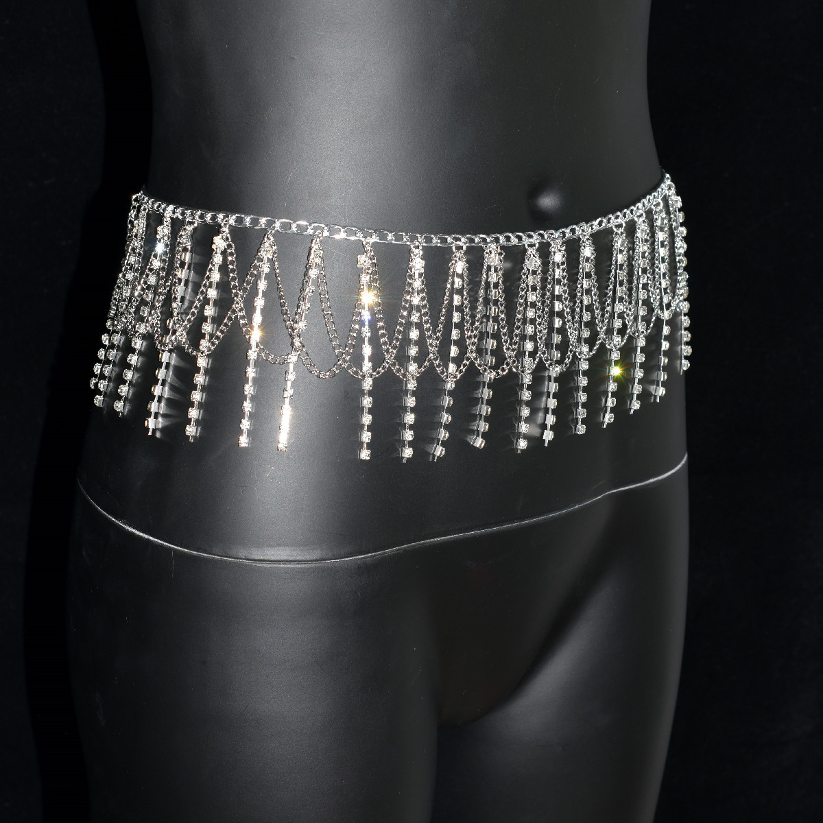 Sexy nightclub tassel rhinestone metal chain waist chain skirt belly dance body chain body chain New Jewelry