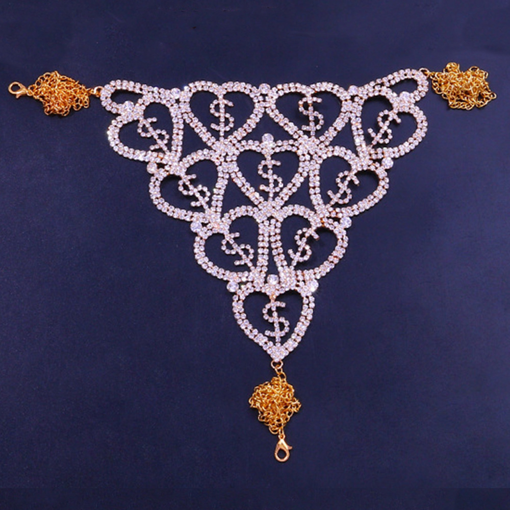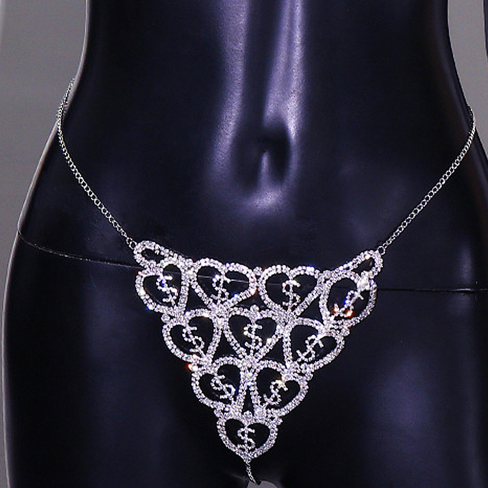 | nameOriginal | Cross-border explosions sexy dollar symbol full diamond waist chain European and American rhinestone love body chain female body chain |