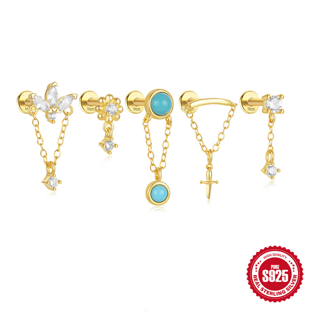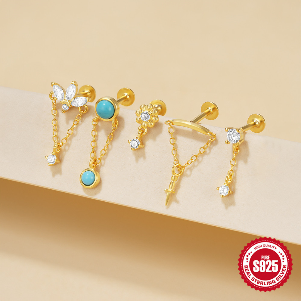 | nameOriginal | European and American fashion simple s925 sterling silver personality geometric diamond cartilage puncture internal thread daily matching ear bone nail |
