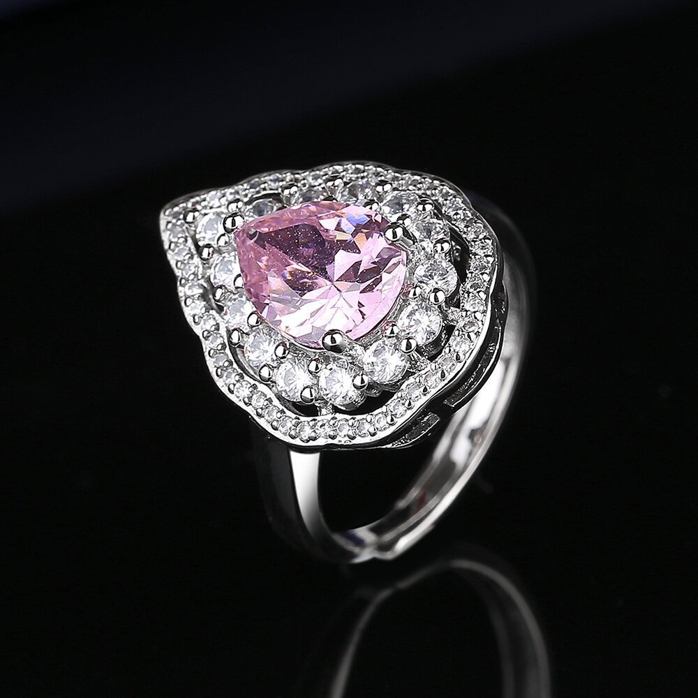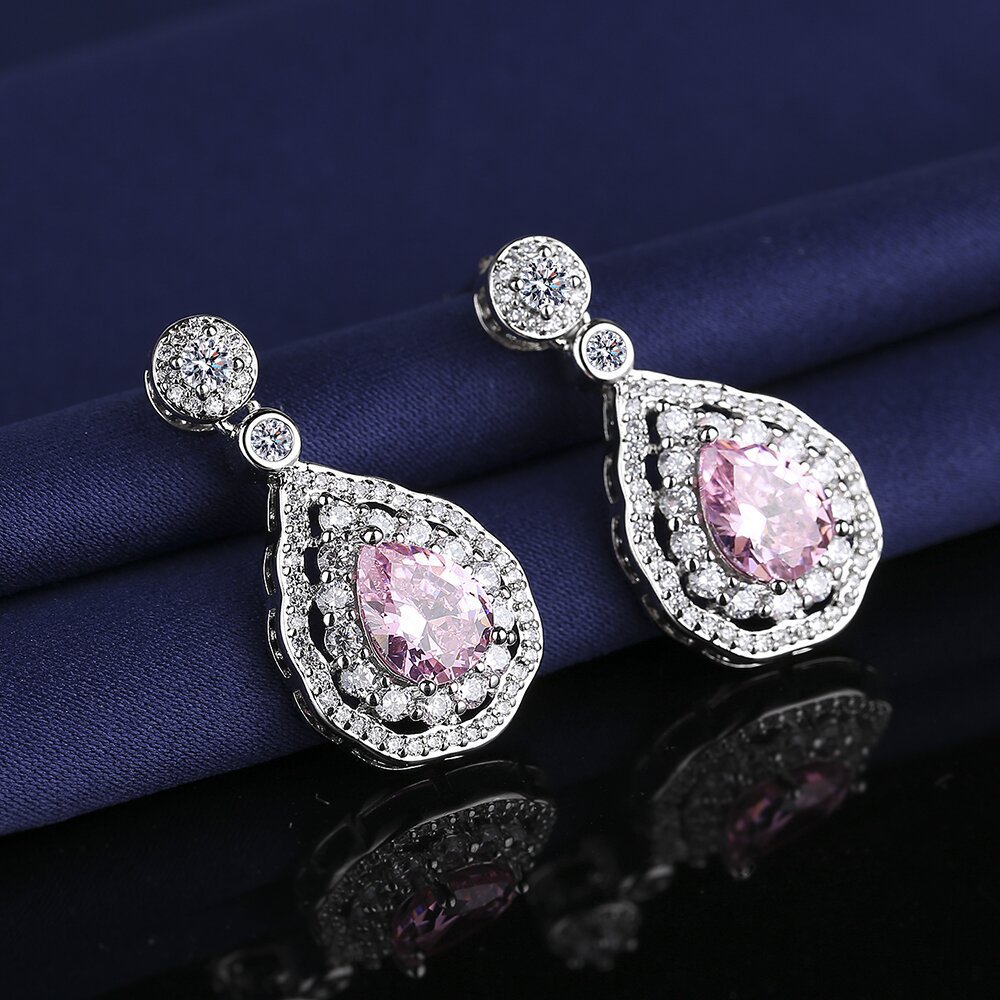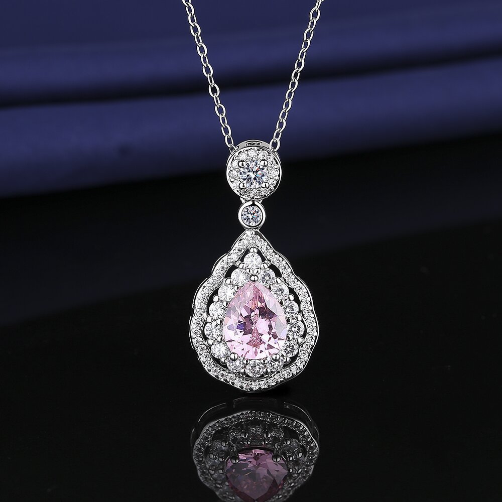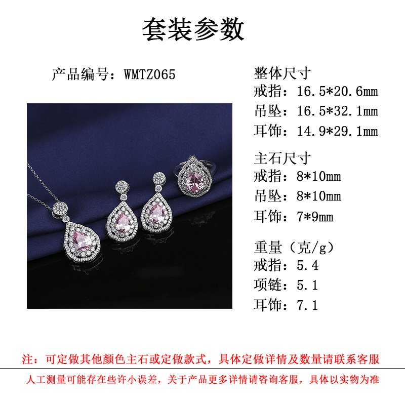 | nameOriginal | Jewelry accessories drop-shaped pink diamond three-piece necklace ring stud earrings women's exquisite clavicle chain ring necklace earrings |
