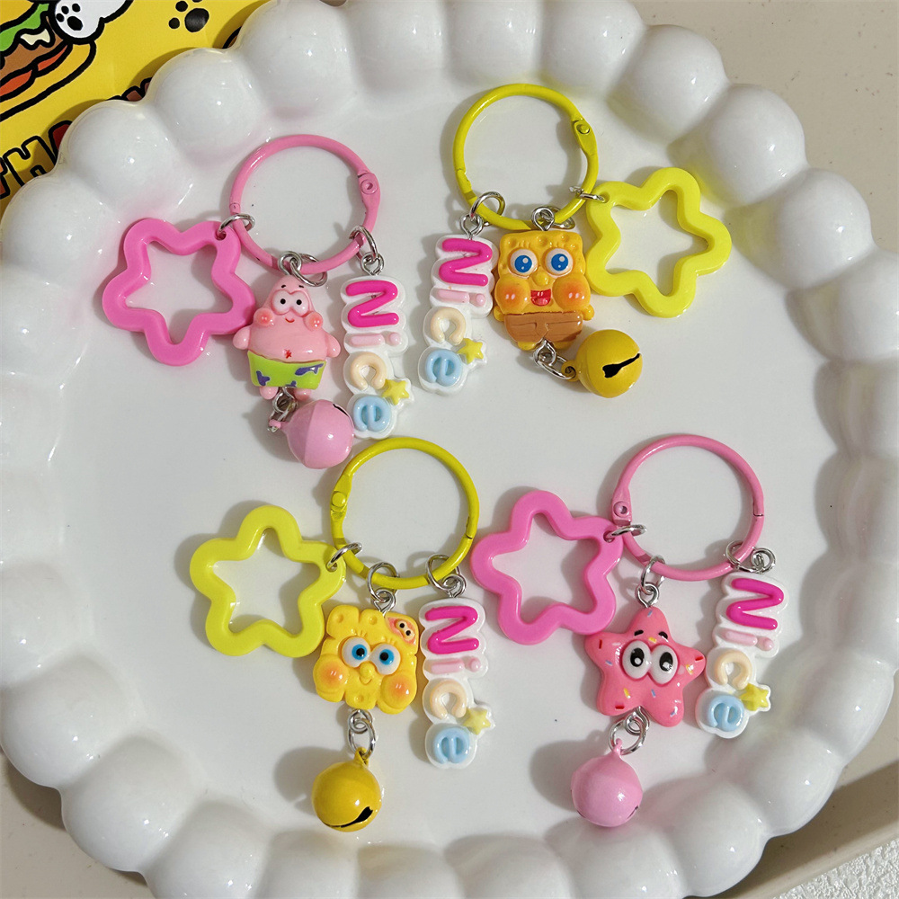 | nameOriginal | Nice English plate Spongebob keychain new star bell pie star pendant student schoolbag pendant |
