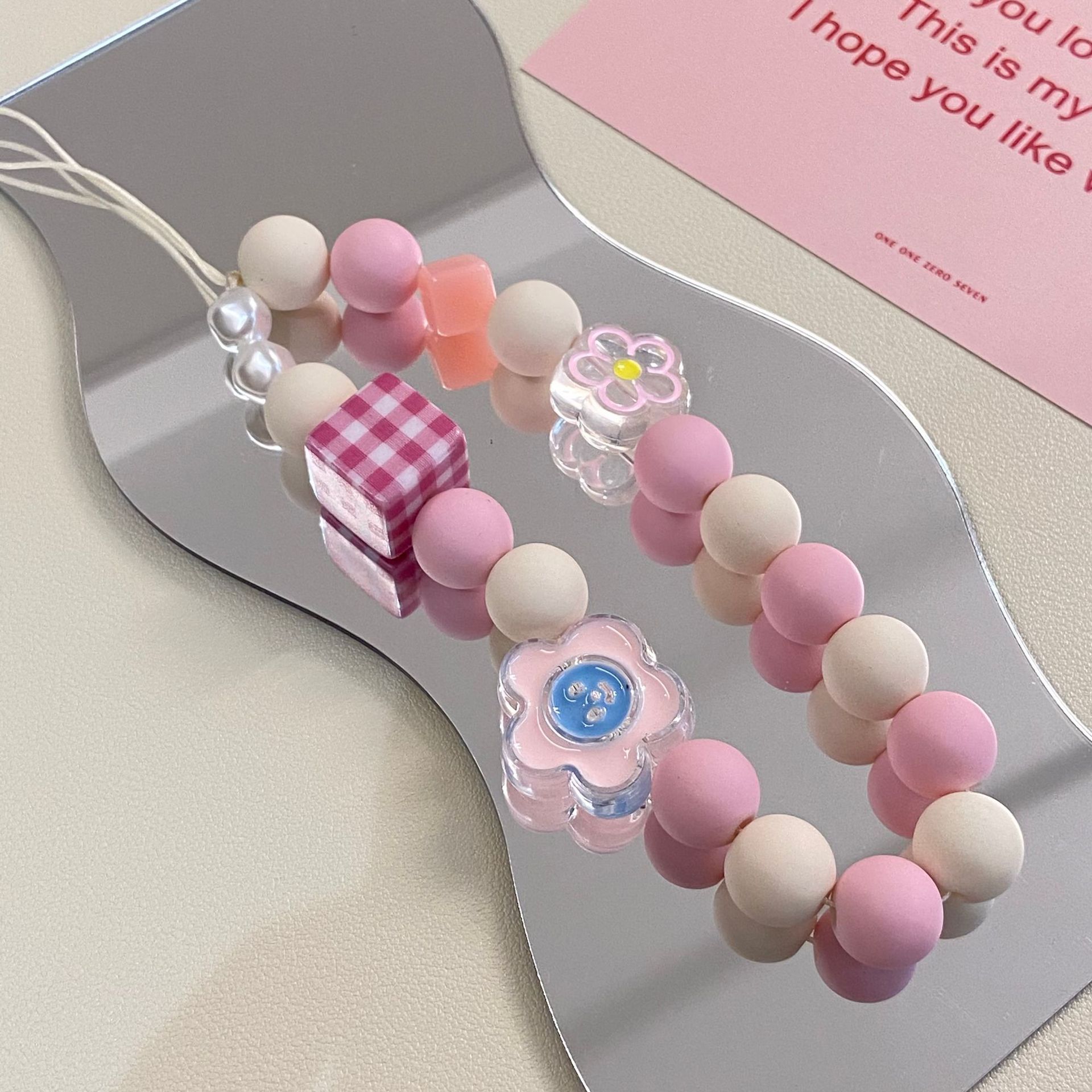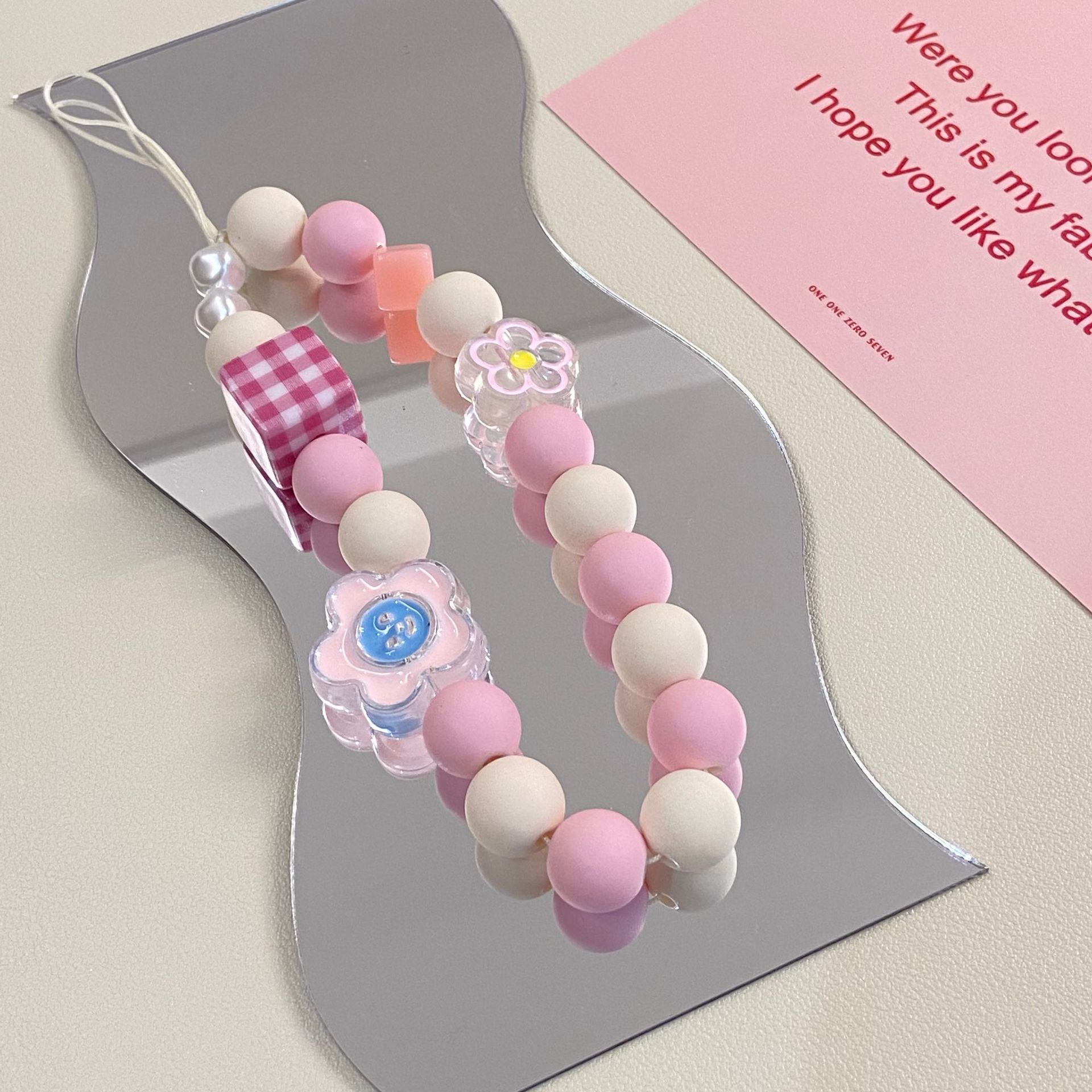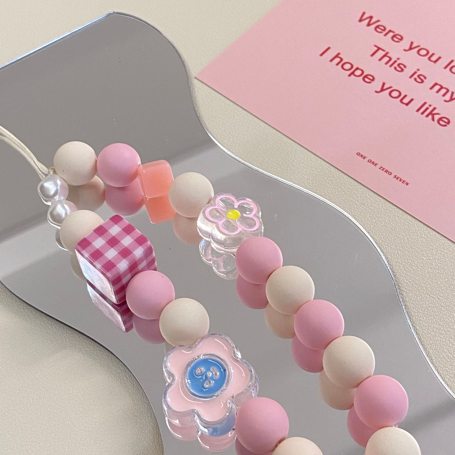Hot Explosions Cute Girl Pink Flower Beaded Mobile Phone Case Lanyard Flower Accessories Mobile Phone Chain Wholesale