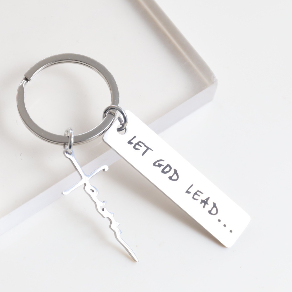 | nameOriginal | Cross-border straight hair stainless steel keychain creative lettering English tag car key pendant metal keychain accessories |