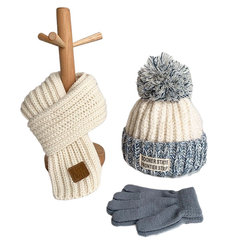 | nameOriginal | Children's hat gloves scarf autumn and winter baby warm fleece-lined hat three-piece set Boys and Girls knitted |