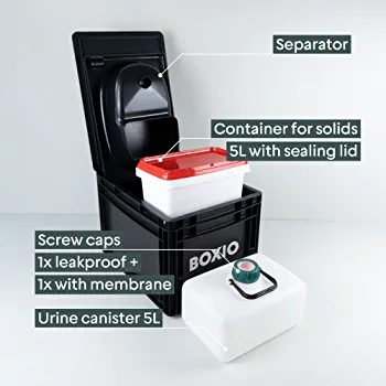 BOXIO Toilet PLUS – Composting Toilet Starter Kit, Portable Toilet, Mini Camping Toilet: 14,7" x 11,8" x 11,0" Made in Germany.