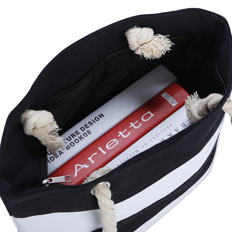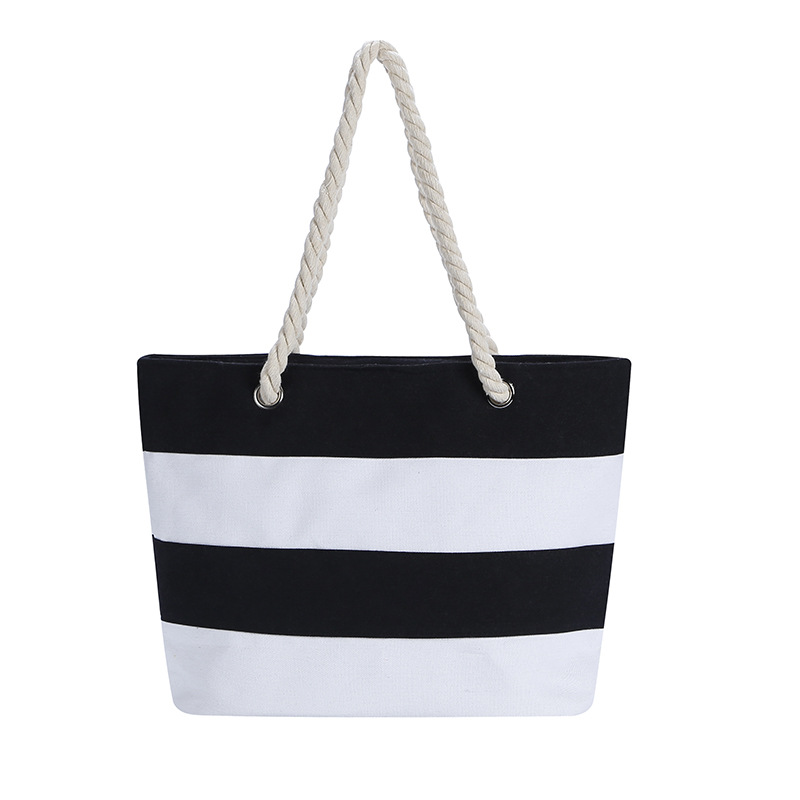 Home tote bag convenient environmental protection beautiful large capacity striped shopping bag can be processed custom canvas bag wholesale
