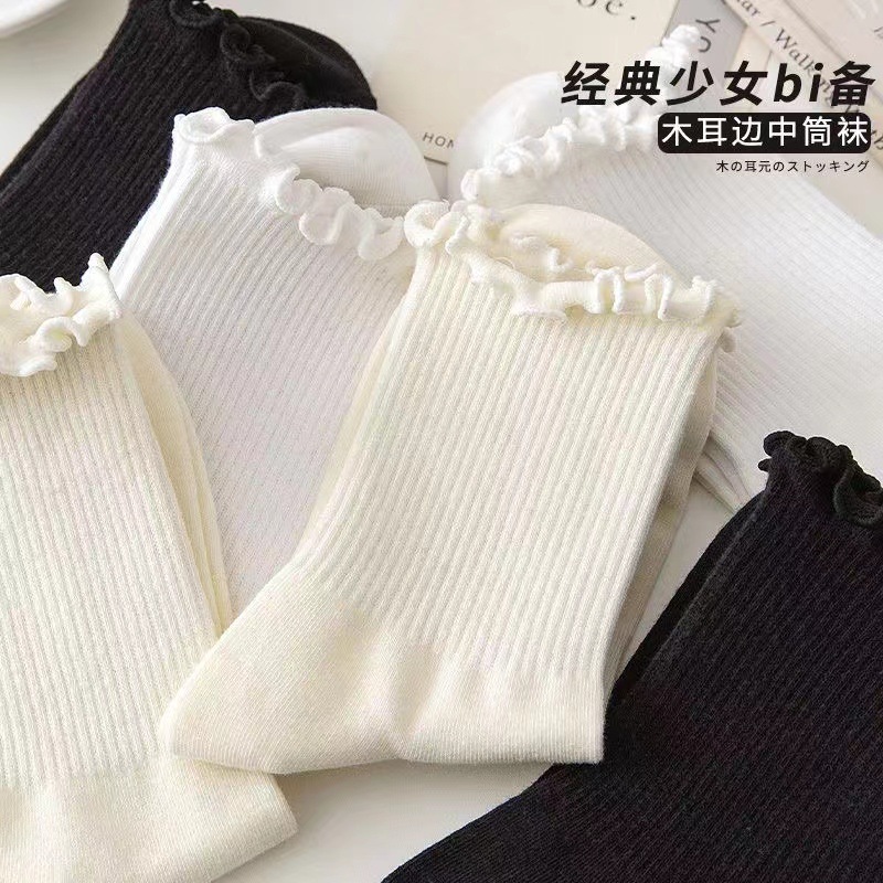 | nameOriginal | Four Seasons All-match Women's Wood-ear Socks White Lace Mid-tube Socks Spring and Autumn Ins Mary Jane Shoes Jk Japanese-style Socks |
