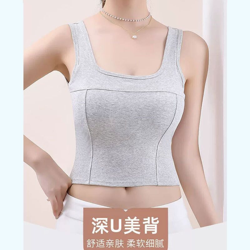 | nameOriginal | Spring and summer with chest pad square collar small vest women's fixed one-piece cup with French sweet hot girl all-match outer wear top |