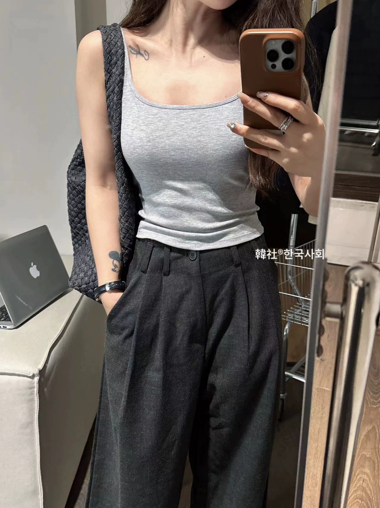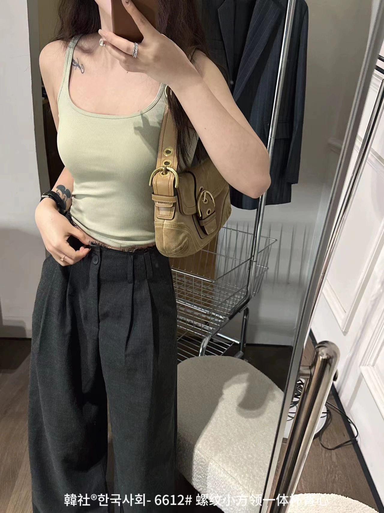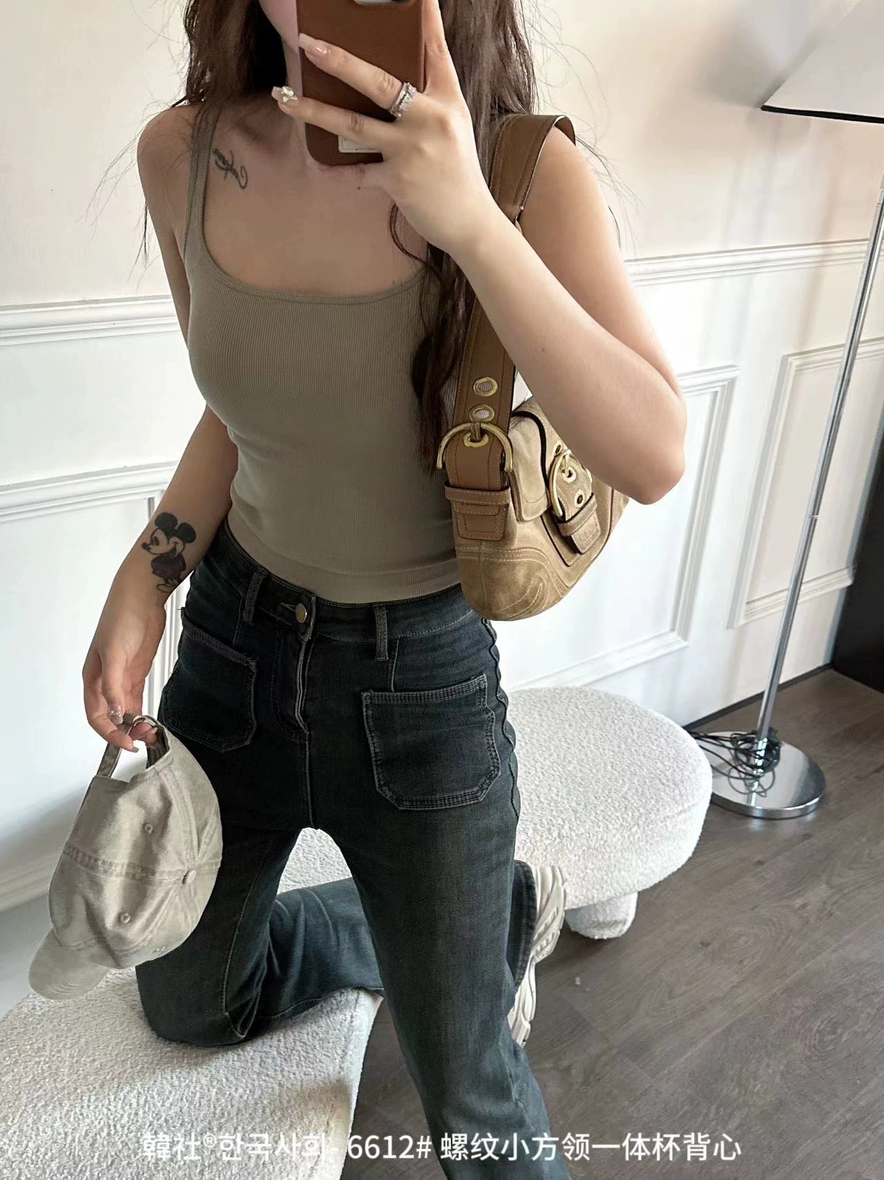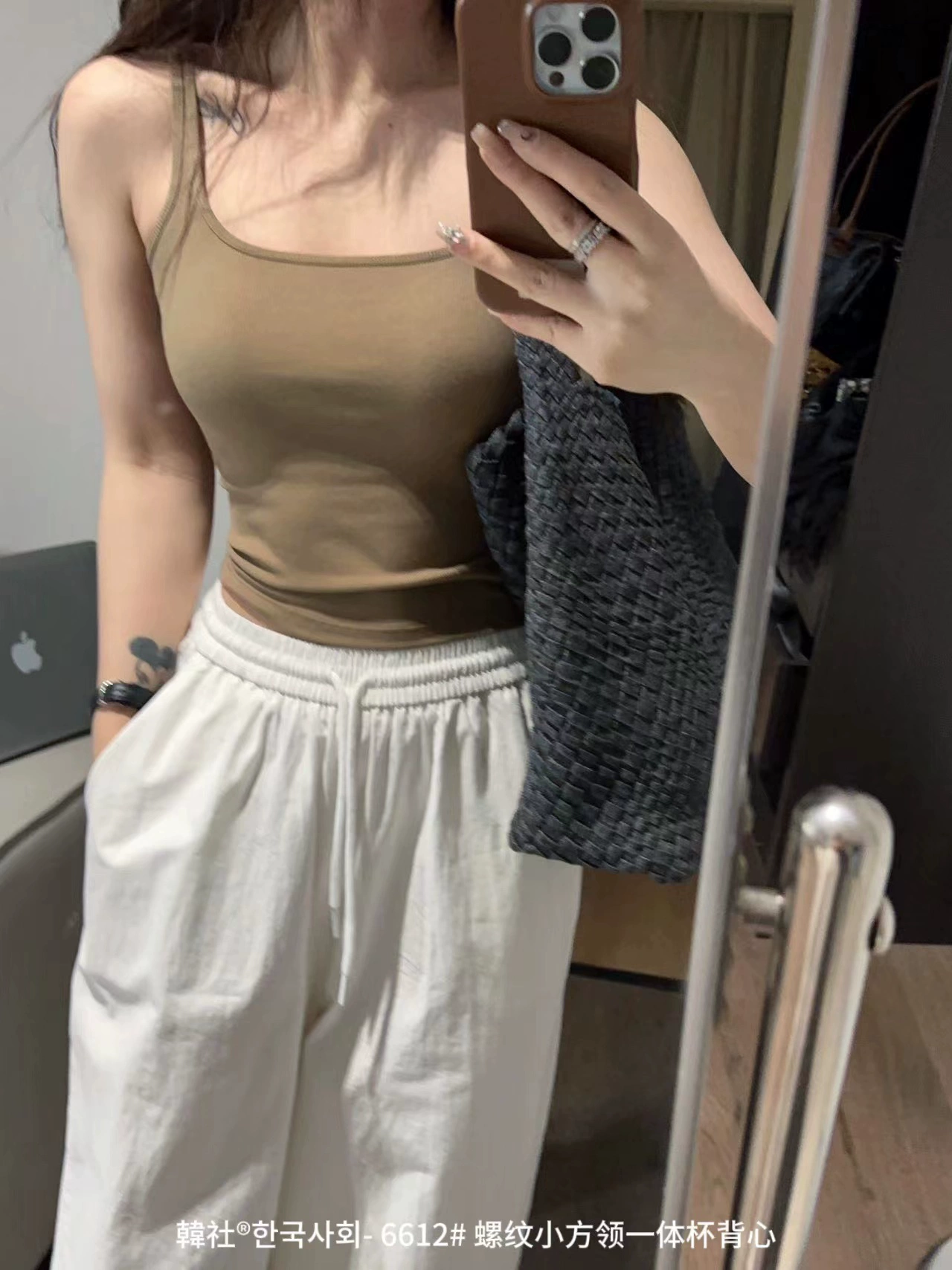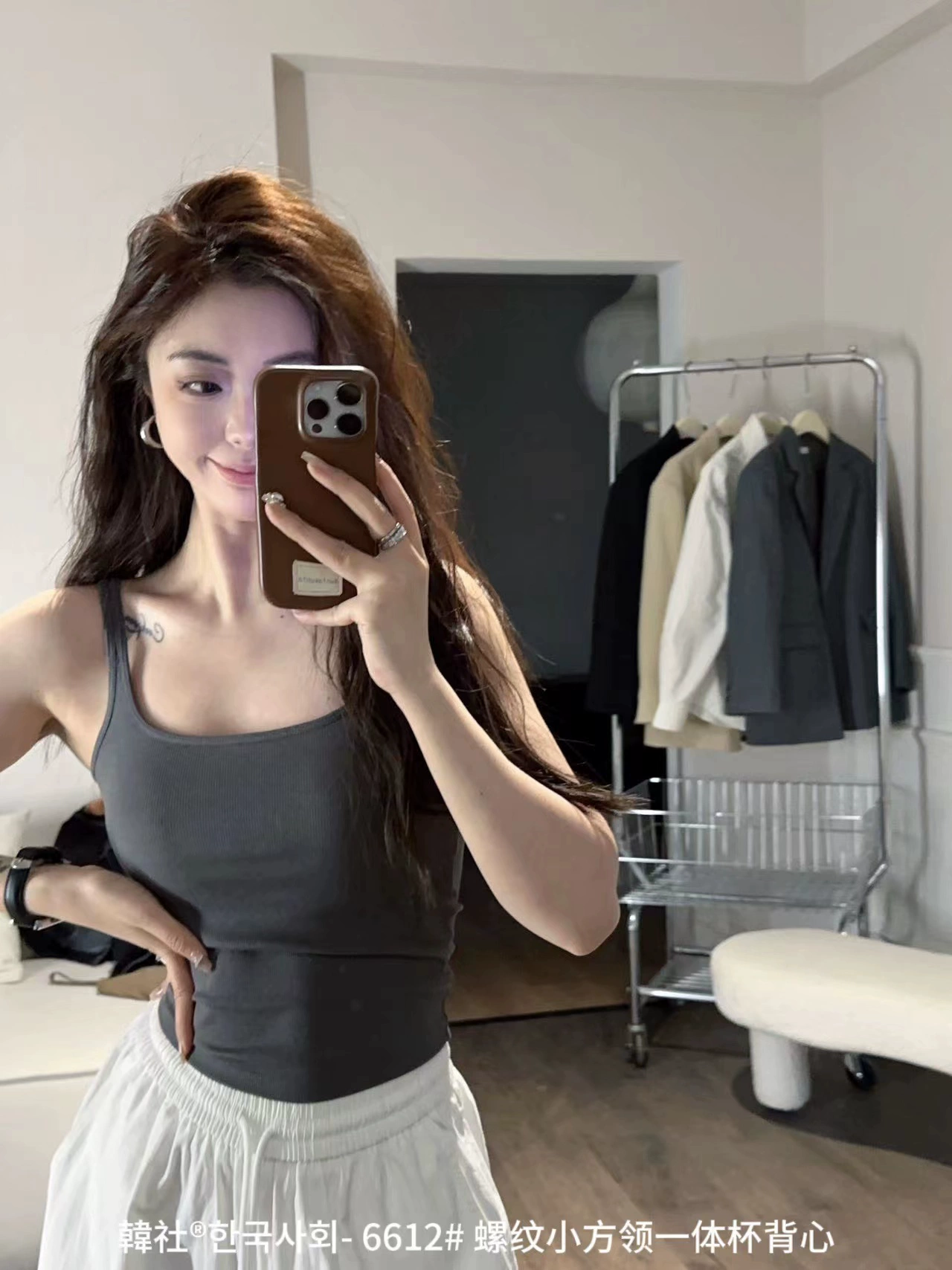 | nameOriginal | Korean threaded small square collar one-cup vest for women in spring and summer, comfortable to cover fermented bean curd, slim solid color inside with beautiful back top |