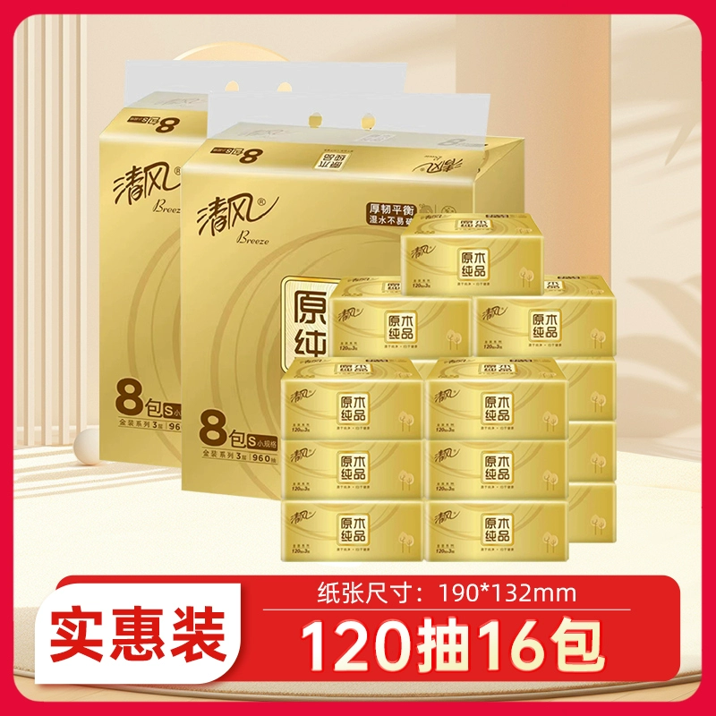 | nameOriginal | [Free Shipping] Qingfeng Tissue Log Gold Pack 3-layer 120 Tissues 6/8/12/16 Pack of Napkins and Facial Tissues |