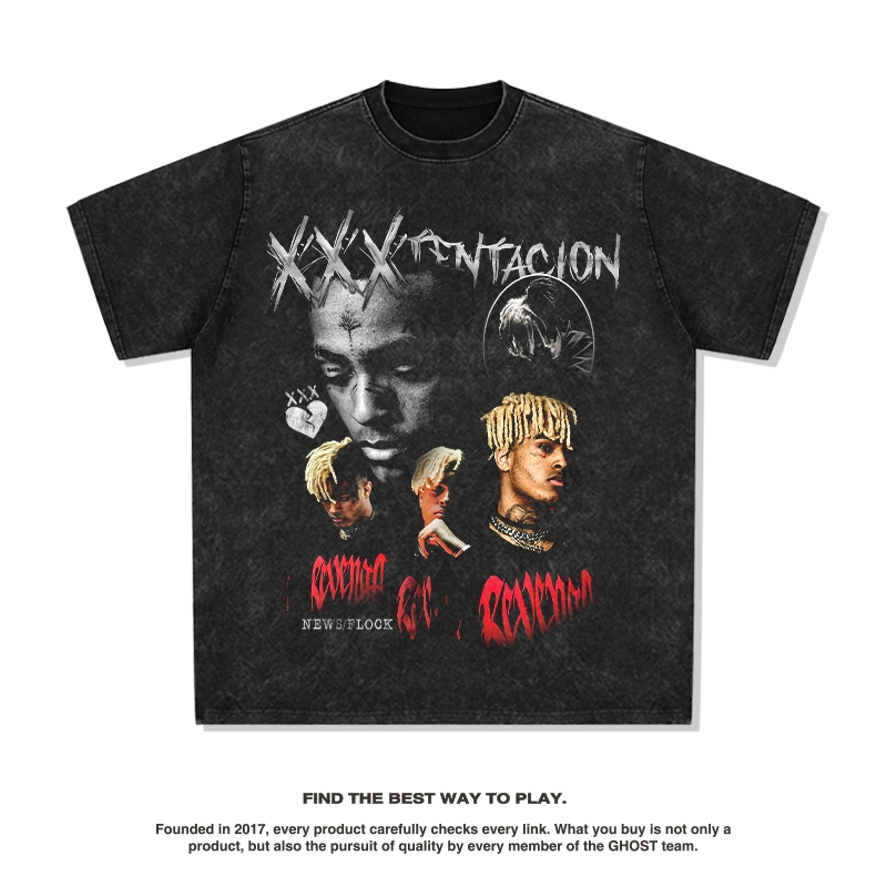 | nameOriginal | XXX Tentacion hip-hop rap retro print American vintage short-sleeved t-shirt heavy cotton round neck |