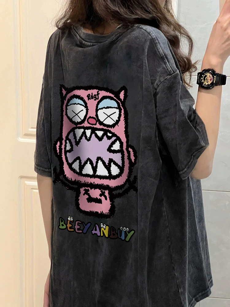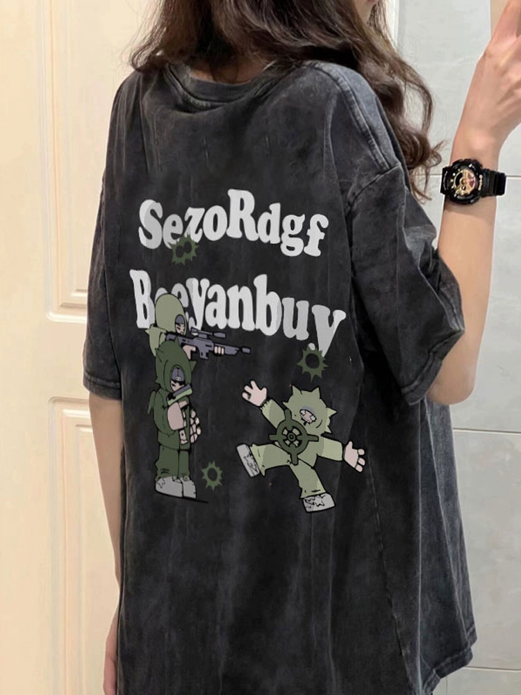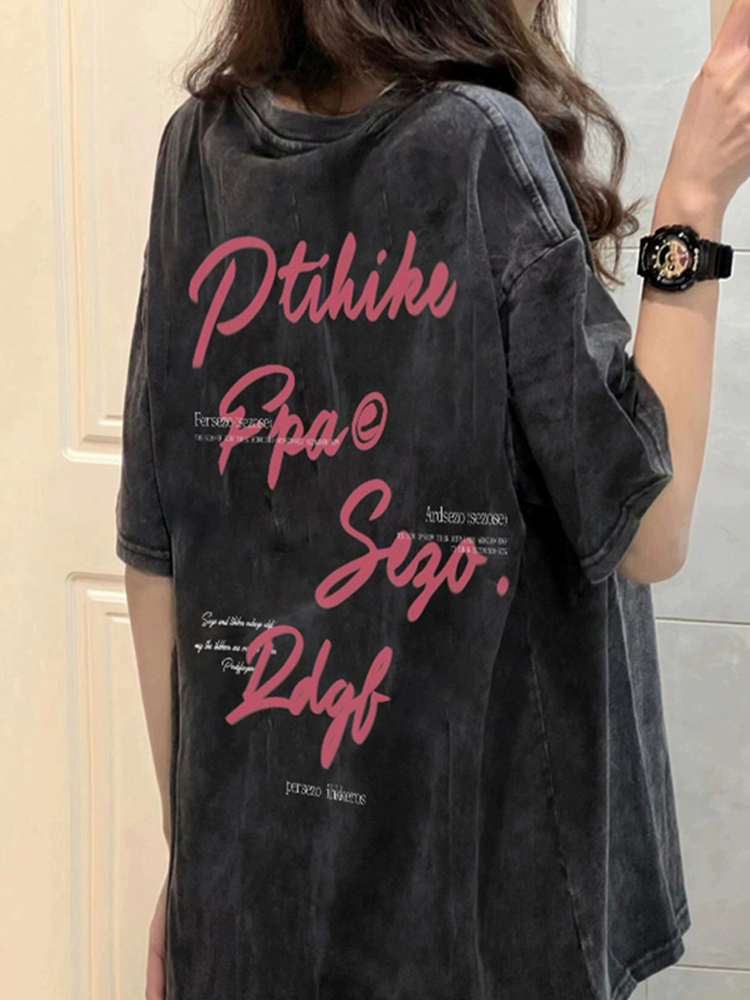 | nameOriginal | American retro washed distressed short-sleeved t-shirt for women 2024 summer new style half-sleeved loose couple wear t-shirt top |