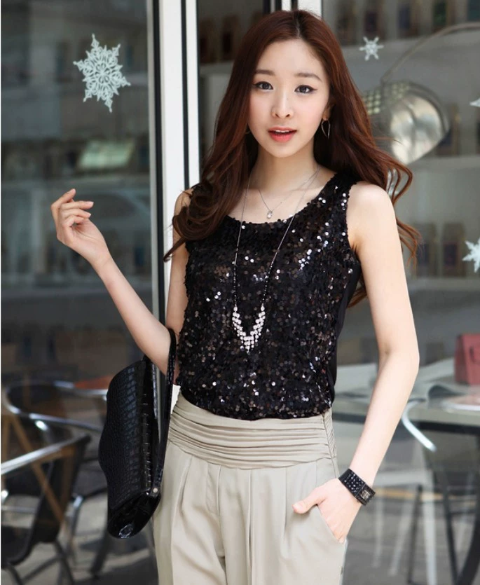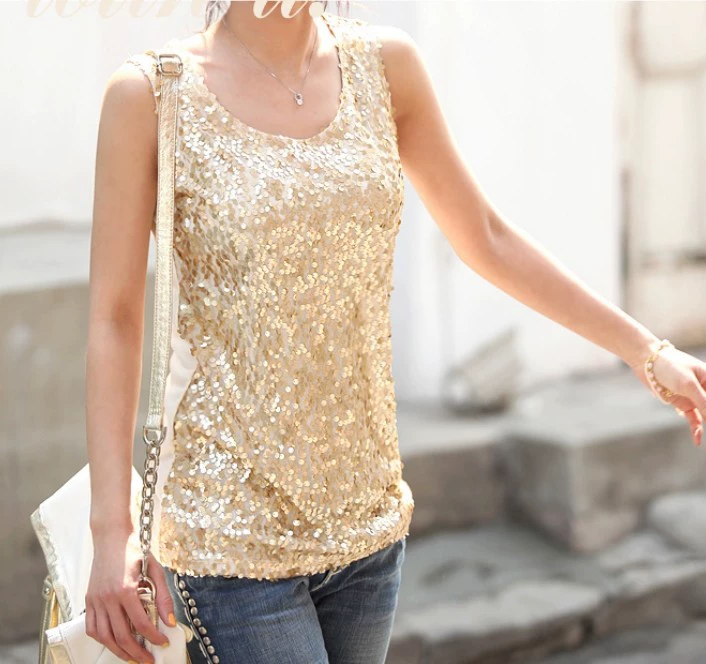 | nameOriginal | Slim-fitting sequined vest, versatile slimming halter top |