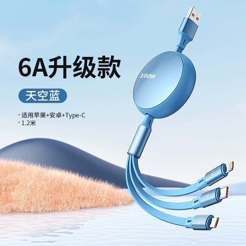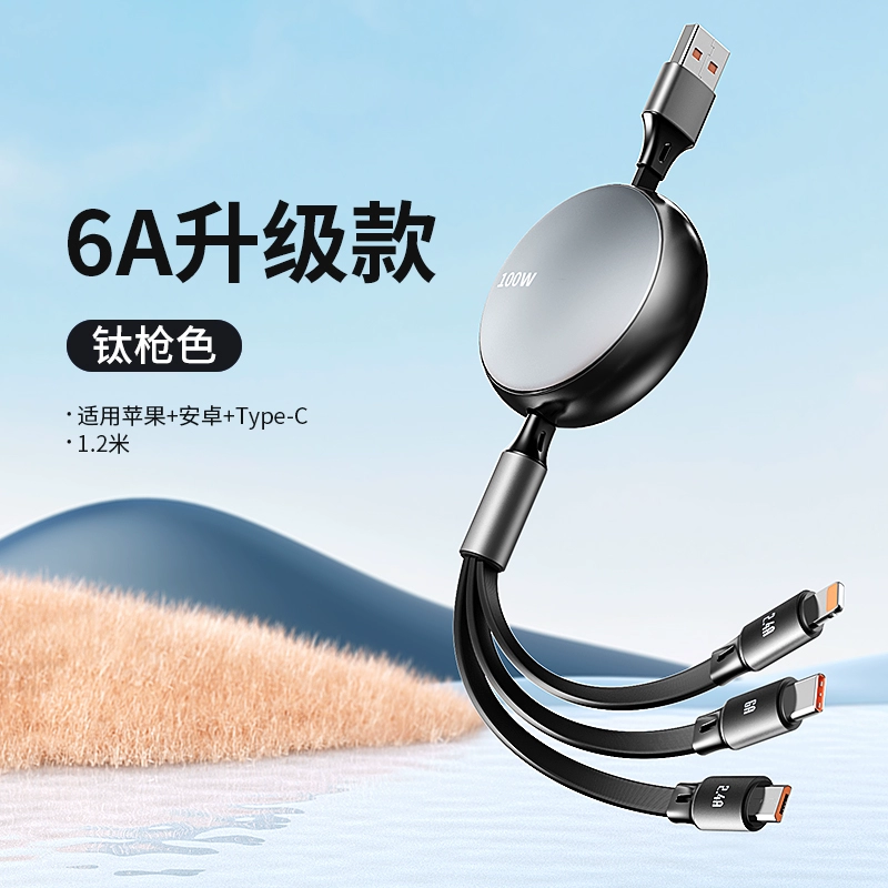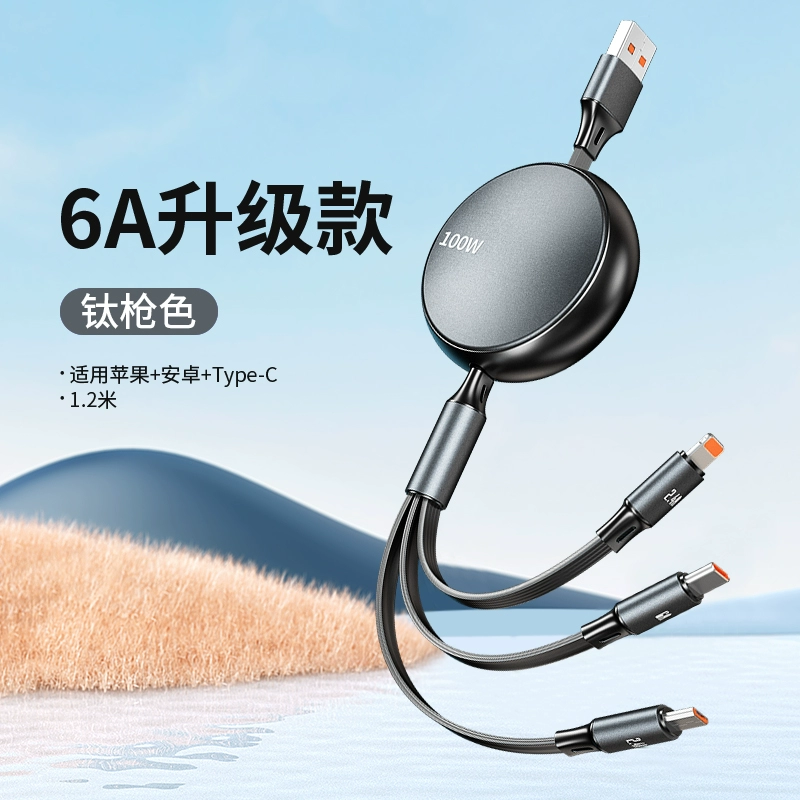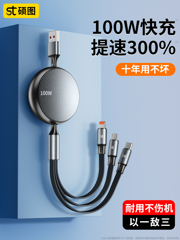 Shuotu three-in-one charging cable, one-to-three fast charging data cable, three-head suitable for Apple, Xiaomi, Android Typec mobile phone, car charger, iPhone multi-head, multi-functional telescopic 6A universal cable