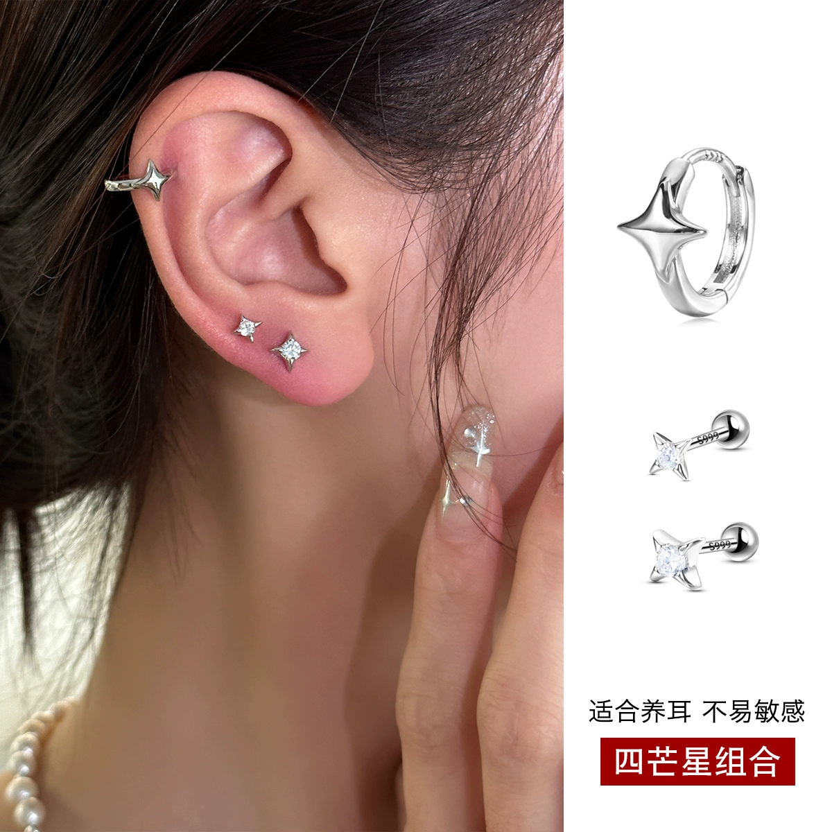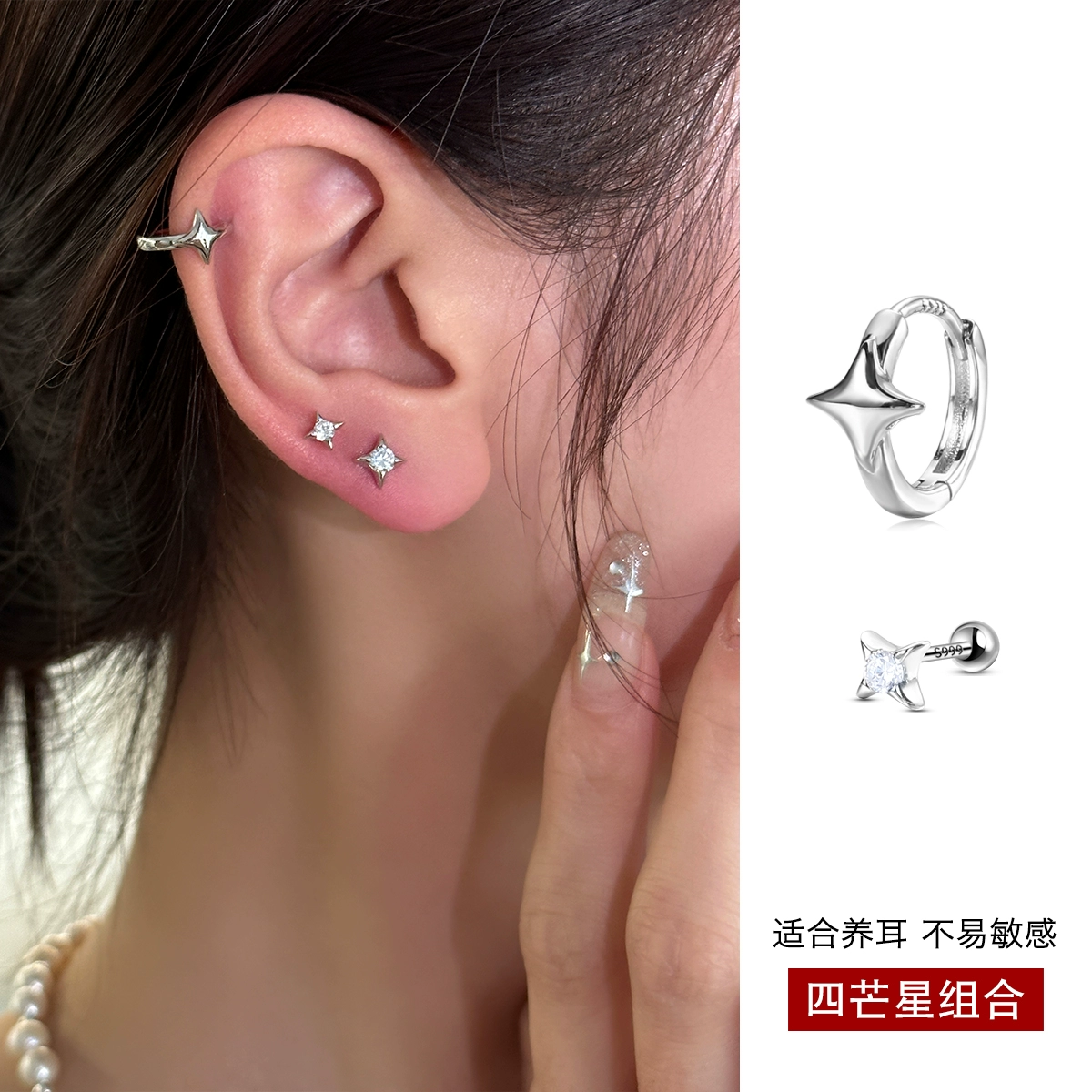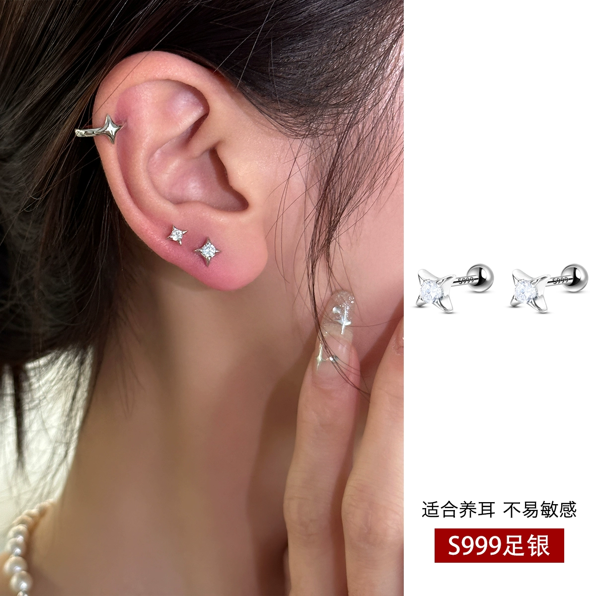 | nameOriginal | 999 sterling silver four-pointed star earrings for women niche design ear bone stud earrings 2023 new silver earrings for women |