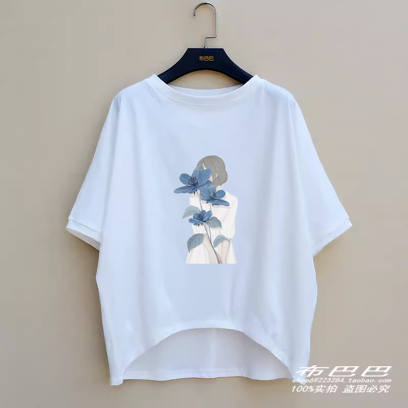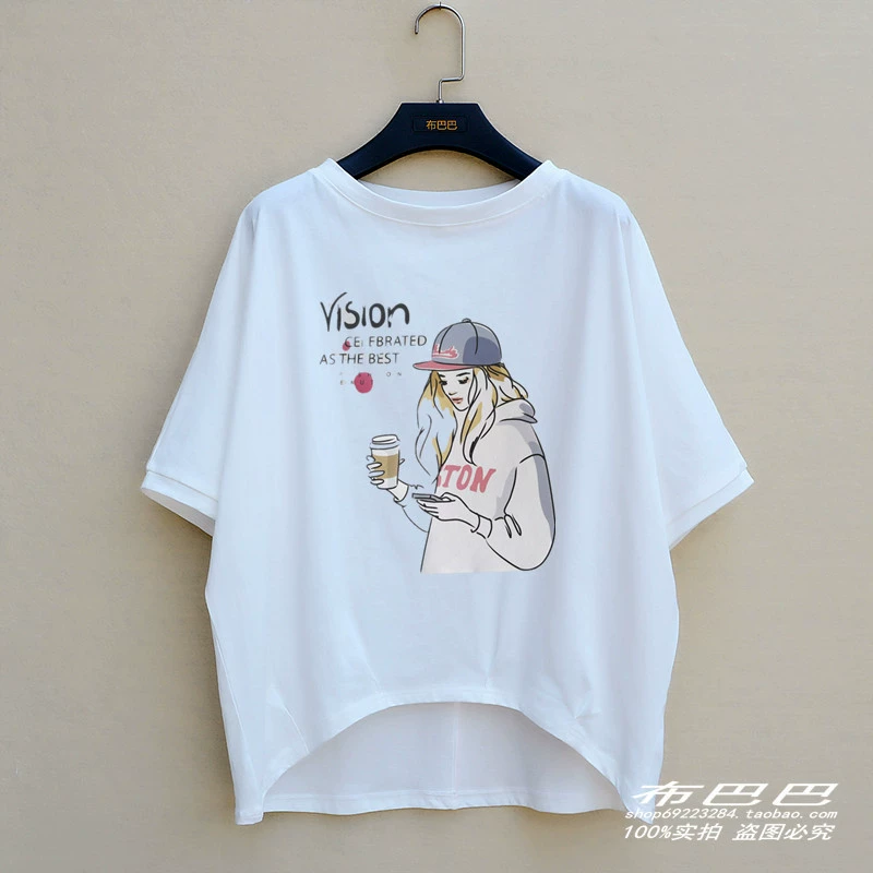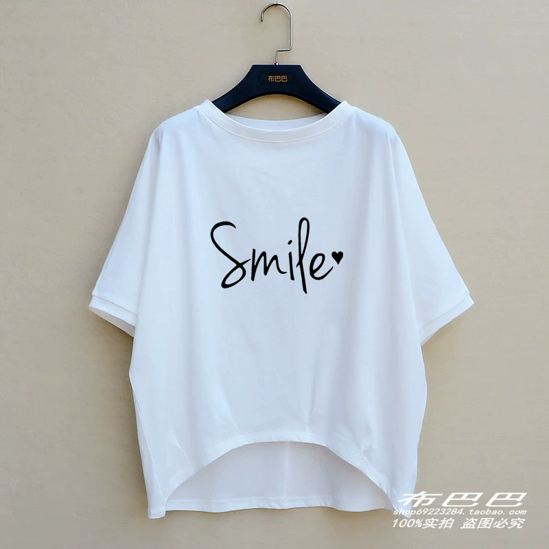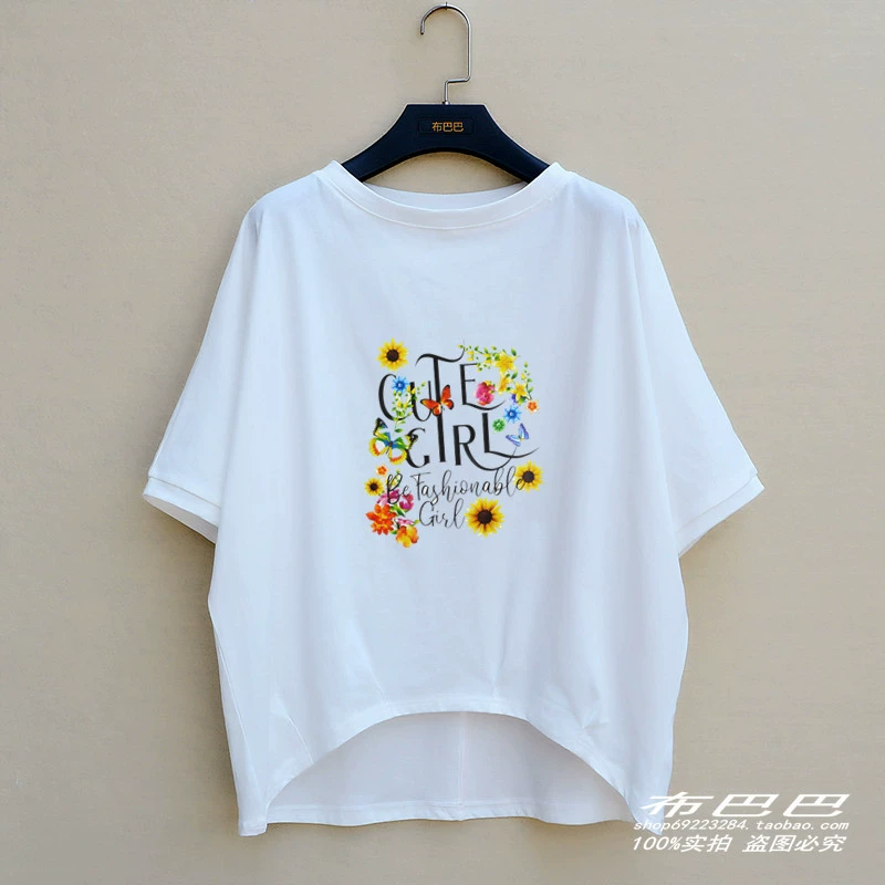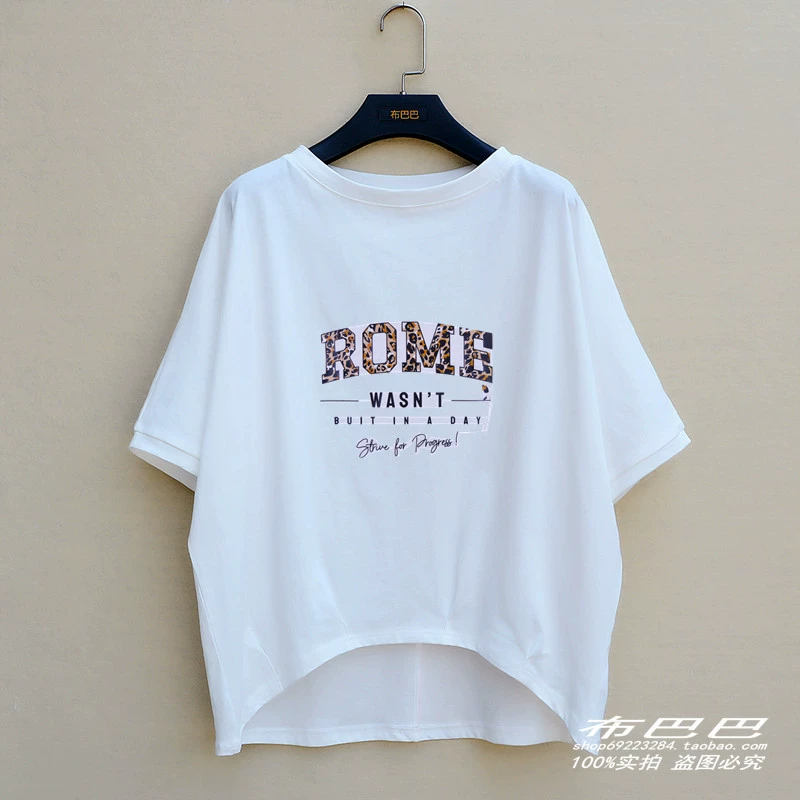 | nameOriginal | Summer new women's pure cotton loose T-shirt short-sleeved versatile printed letters low round neck top large size bat shirt summer |