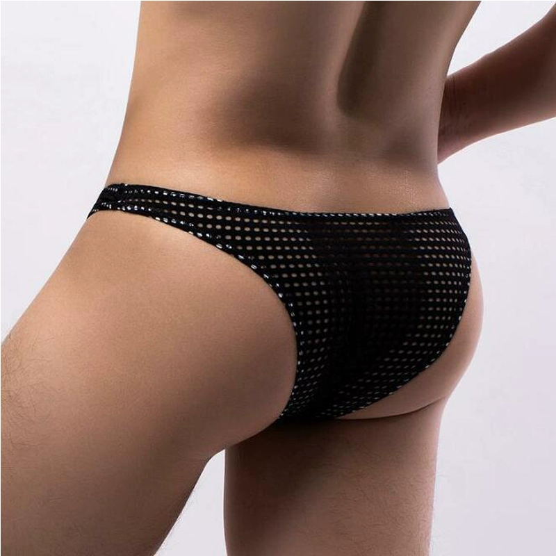| nameOriginal | Half-covering men's small triangle mesh mesh briefs showing buttocks sexy hollow translucent low-waist bikini briefs |