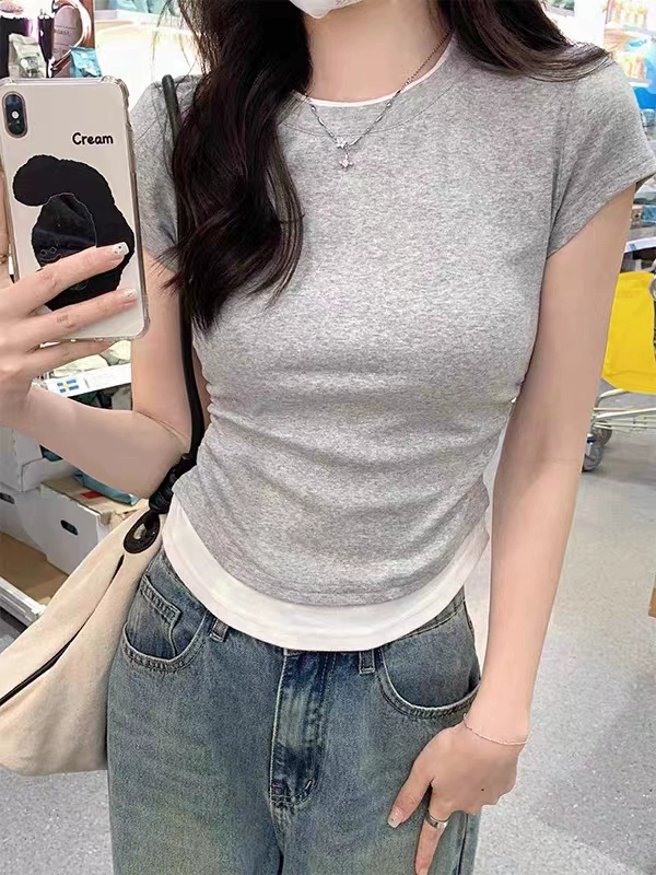 | nameOriginal | Blue and white contrast round neck, off-the-shoulder, two-piece pleated short-sleeves |