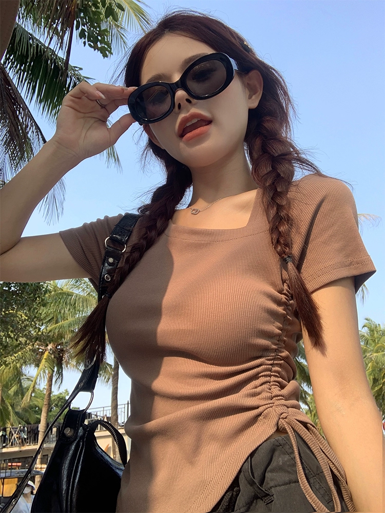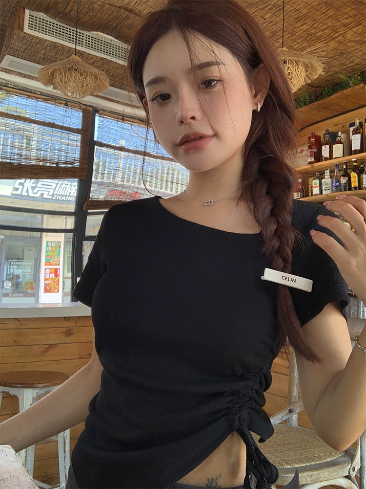 | nameOriginal | Women's short-sleeved summer design slim top with drawstring |