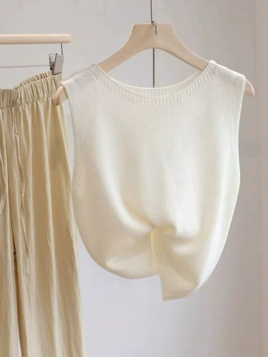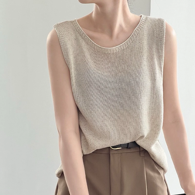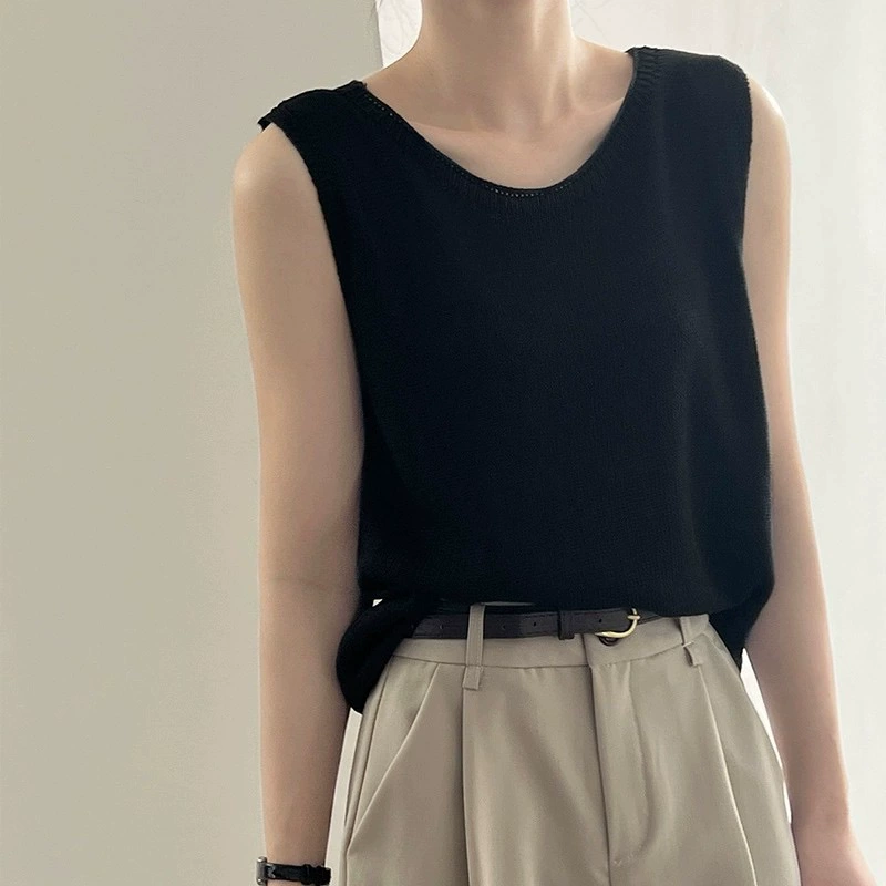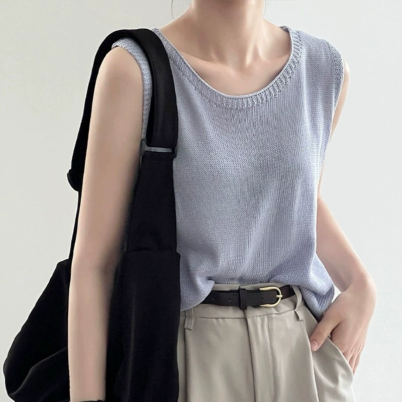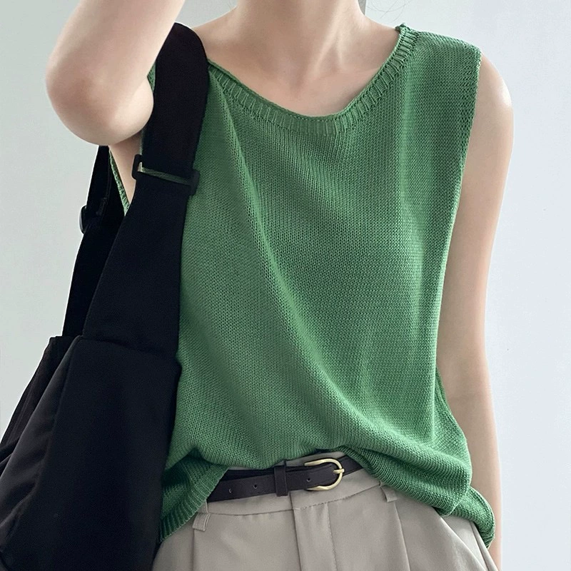 High-end linen vest for women’s summer outer wear, light and sophisticated French retro ice silk knitted waistcoat sleeveless top