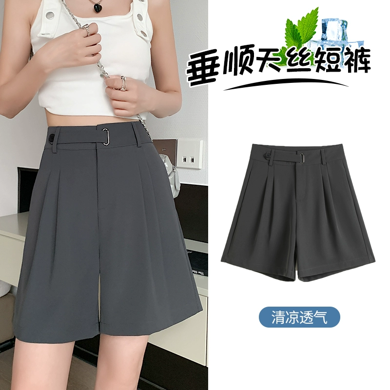 | nameOriginal | White suit shorts women's summer thin chic pocket a-line 2024 new loose ice silk wide leg five-quarter pants |