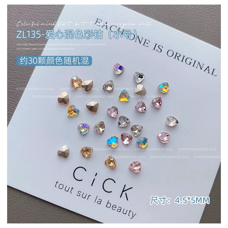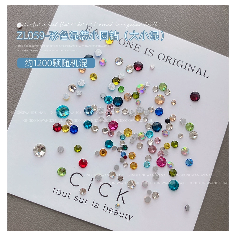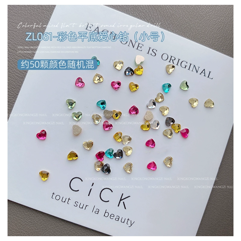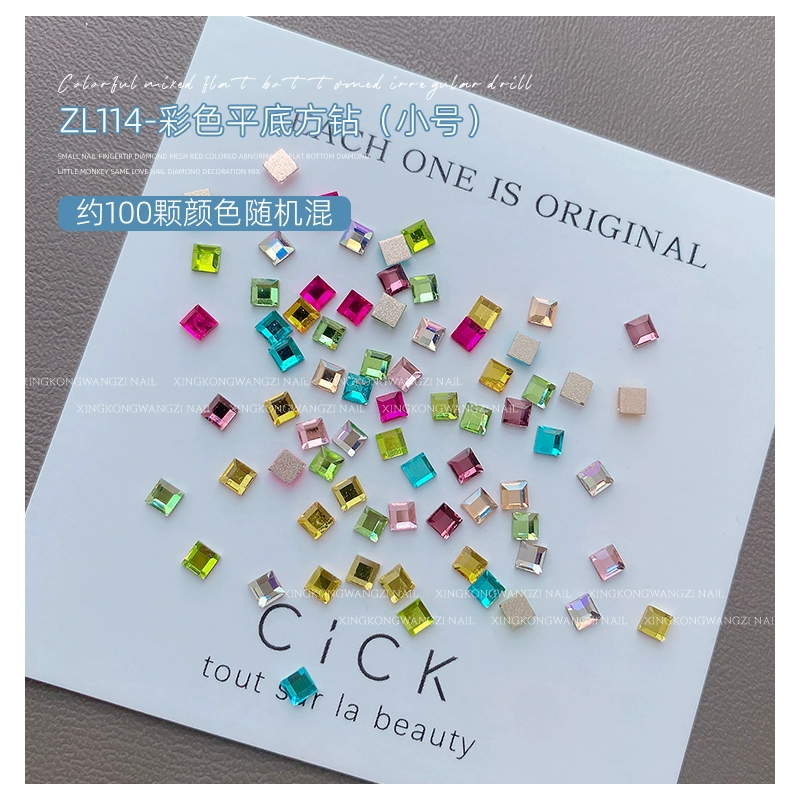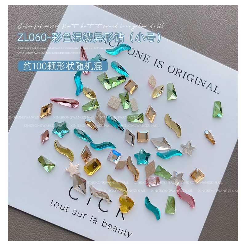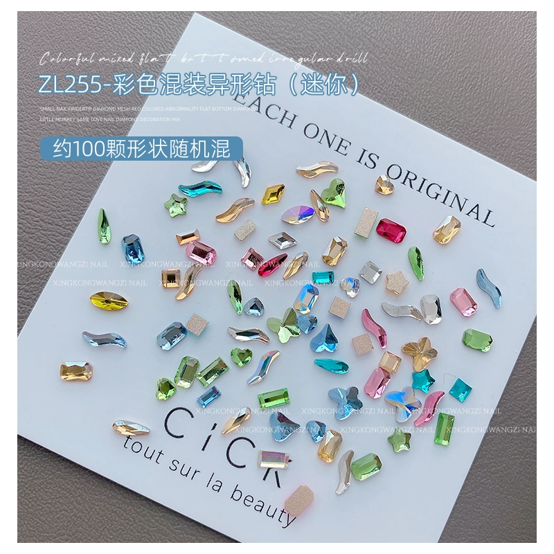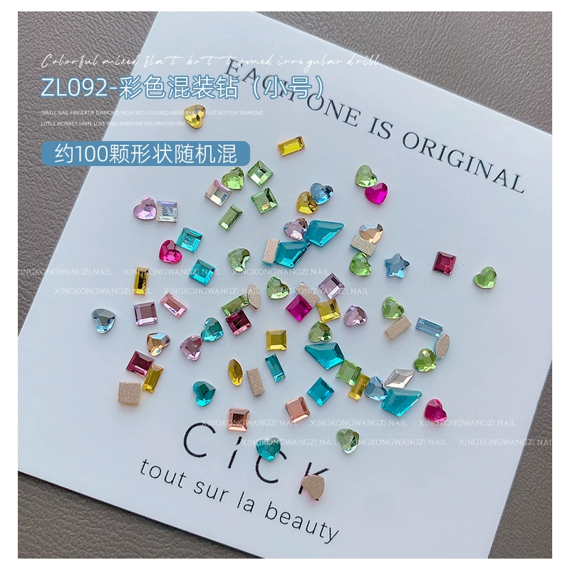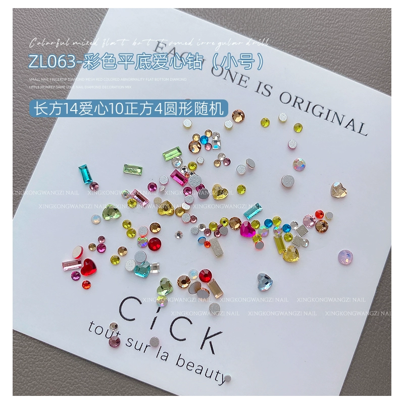 | nameOriginal | Internet celebrity popular nail art color mini special-shaped flat bottom diamond 2024 little monkey same style K9 mixed nail tip bottom diamond |