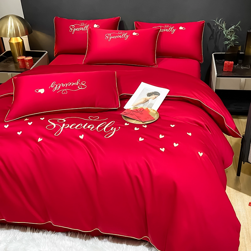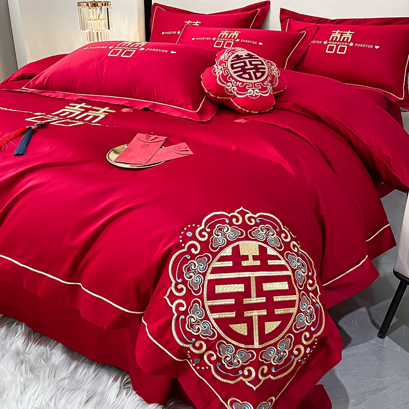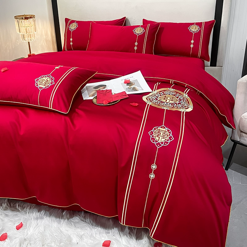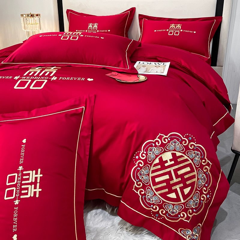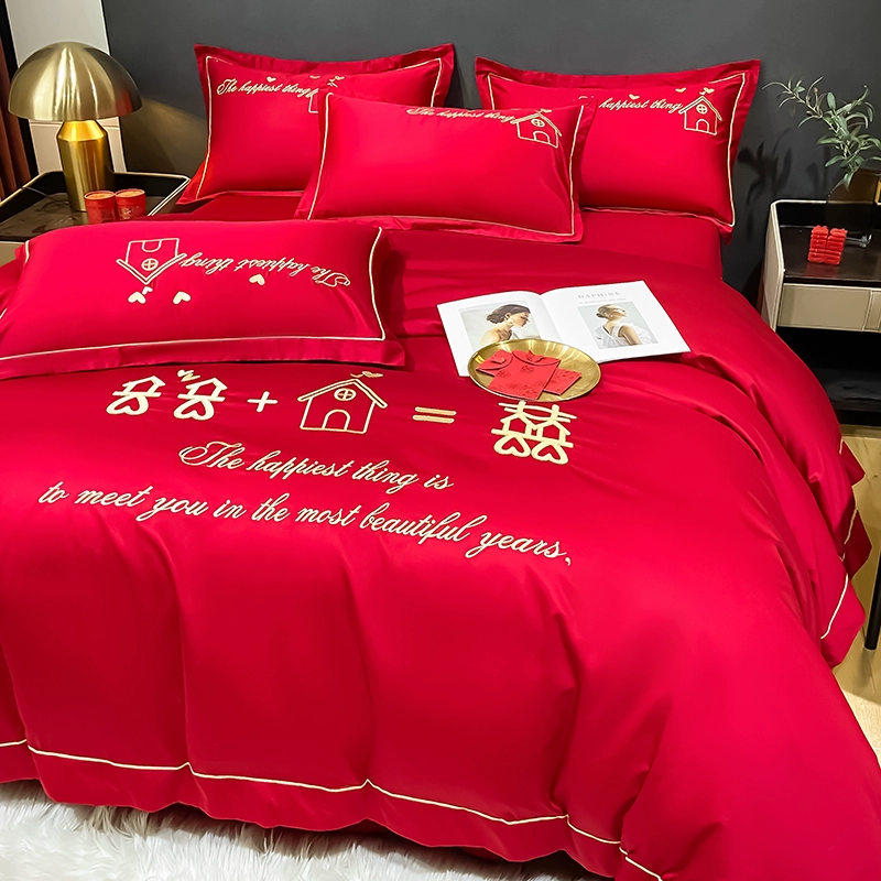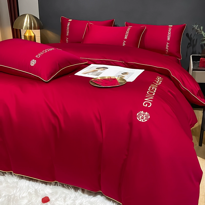 Wedding four-piece set of bedding pure big red washing cotton newlywed quilt wedding room wedding wedding bedding set