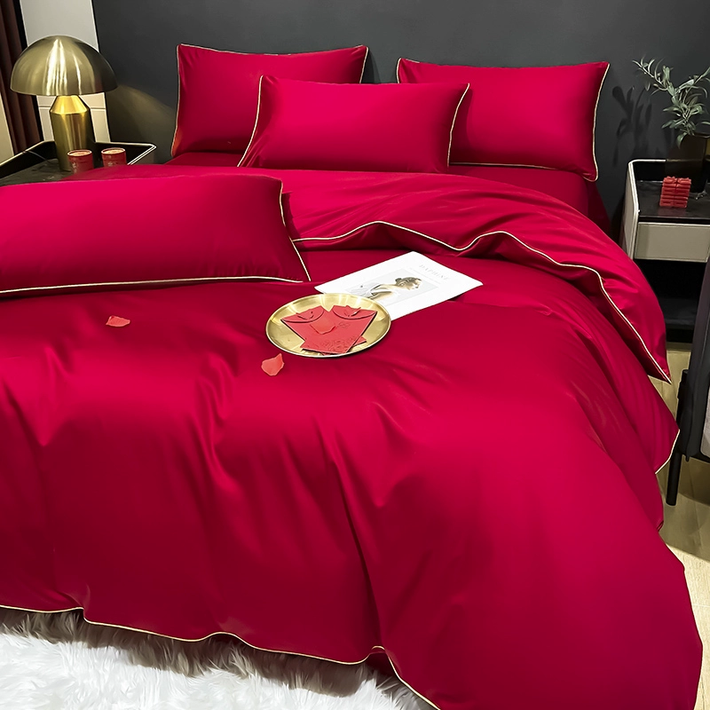 Wedding four-piece bedding set pure bright red washed cotton wedding quilt wedding room wedding room wedding bedding set