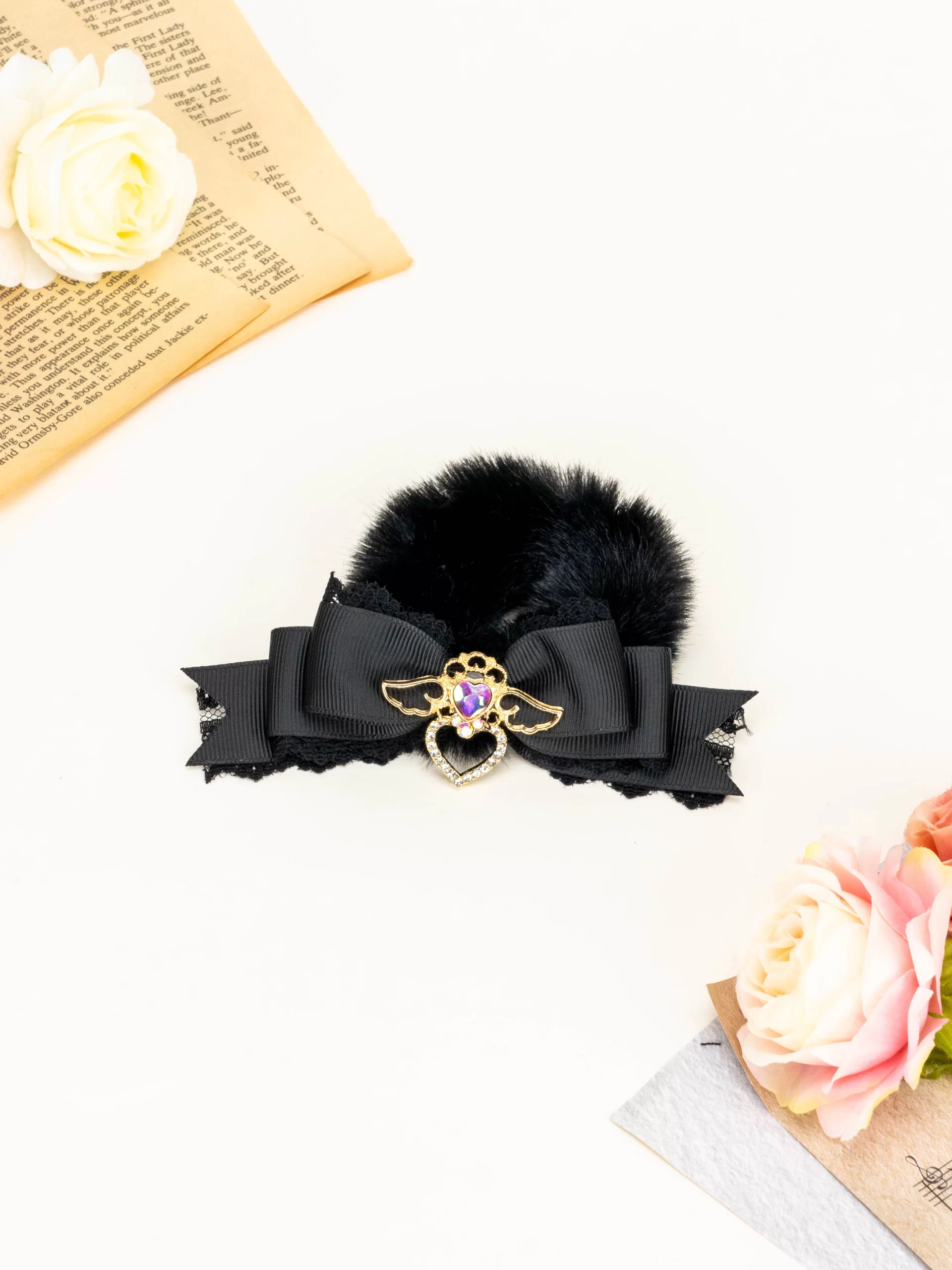 | nameOriginal | Japanese mine series mass-produced angel rhinestone bow plush hair ring double ponytail hand-made headband hair rope |