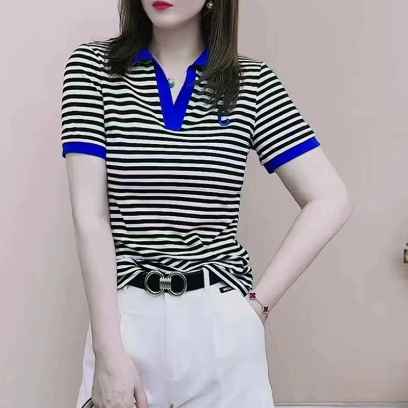 | nameOriginal | Pure cotton T-shirt women's short-sleeved spring and summer large size loose and versatile solid color POLO collar top fat mm slimming bottoming shirt |