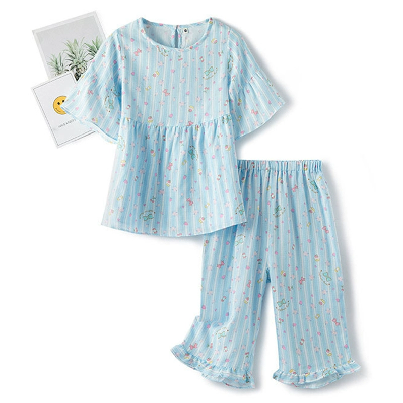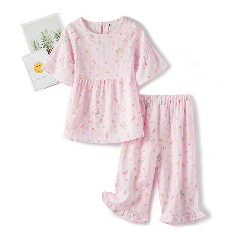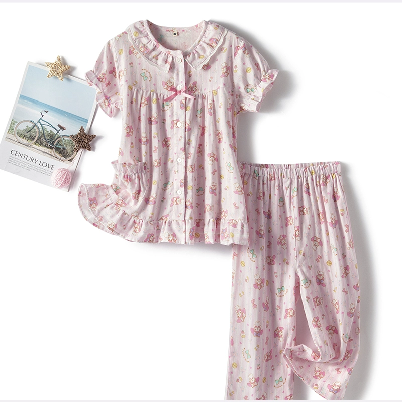 | nameOriginal | Girls' cotton double-layer gauze pajamas spring, summer and autumn pure cotton children's and women's home clothes parent-child living clothes set |