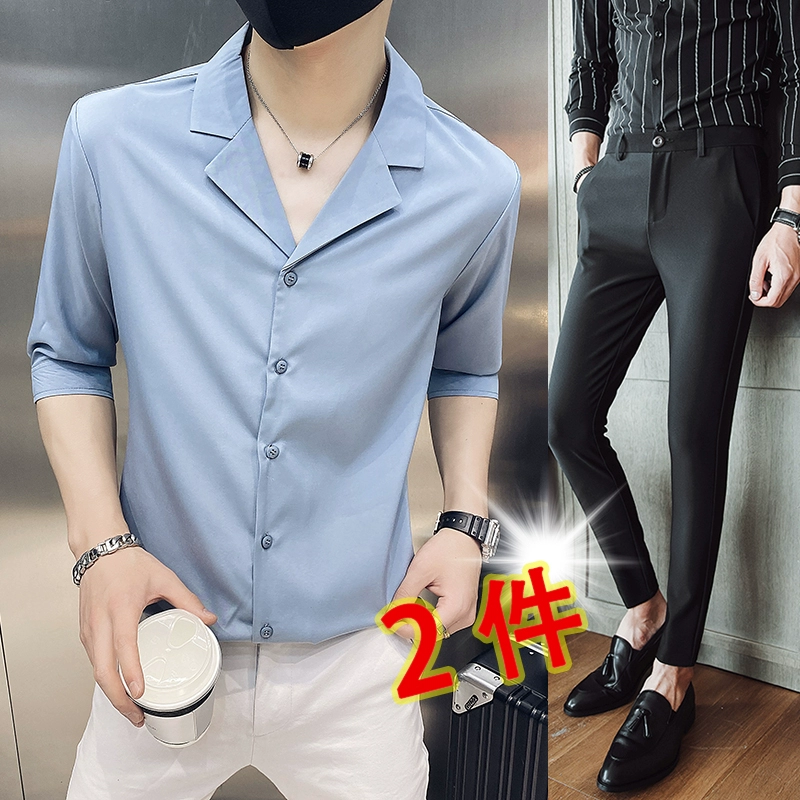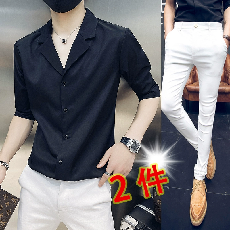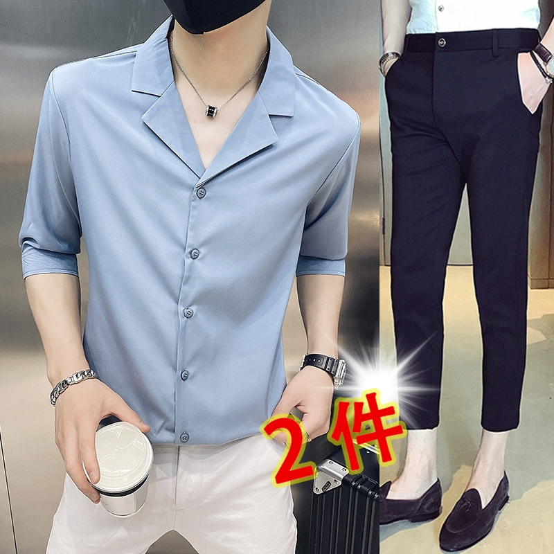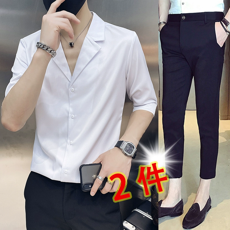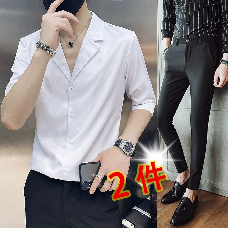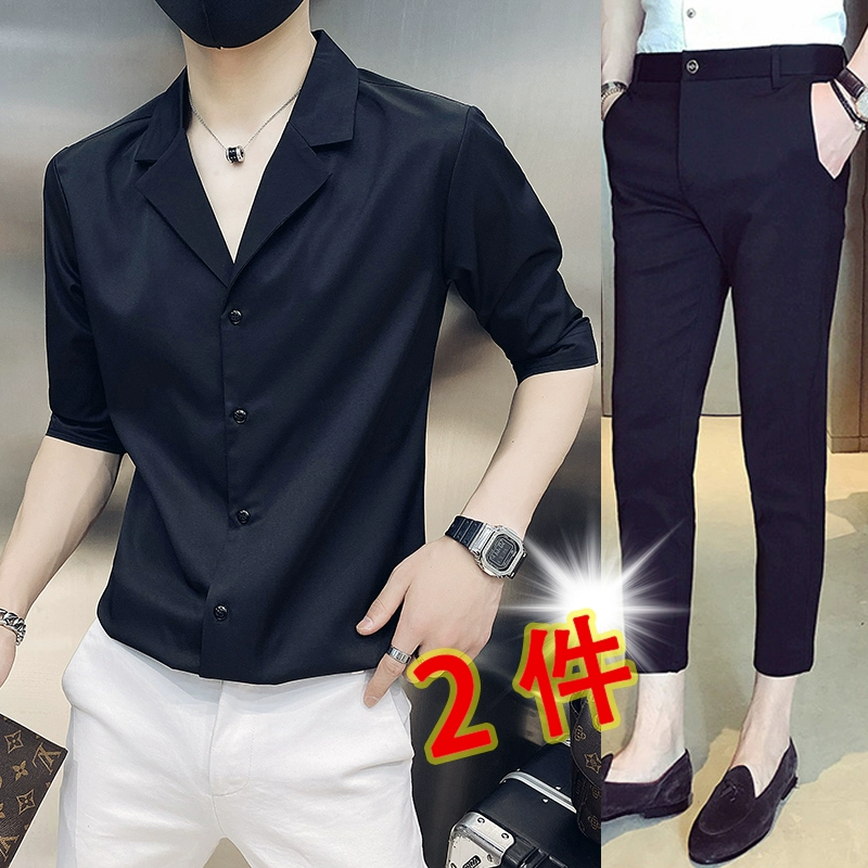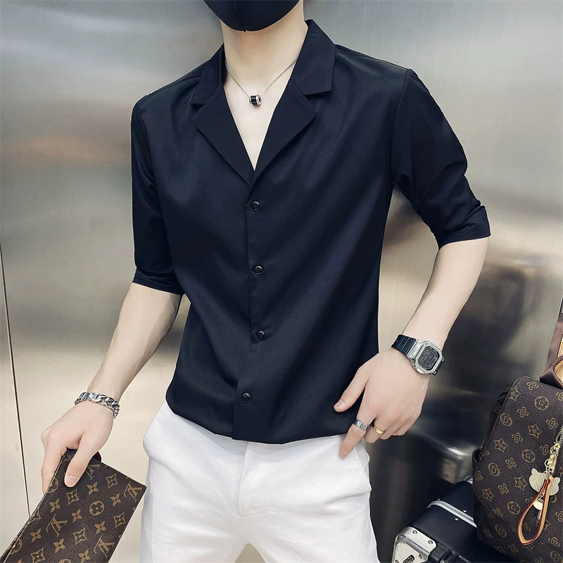 | nameOriginal | One-inch shirt, three-quarter sleeves, hairstylist V-neck handsome shirt |