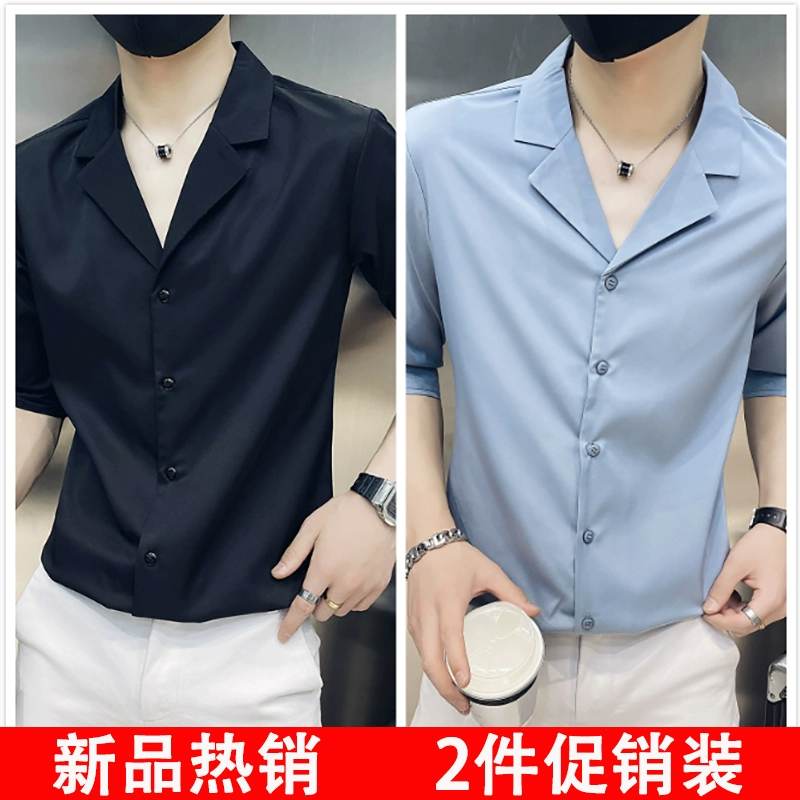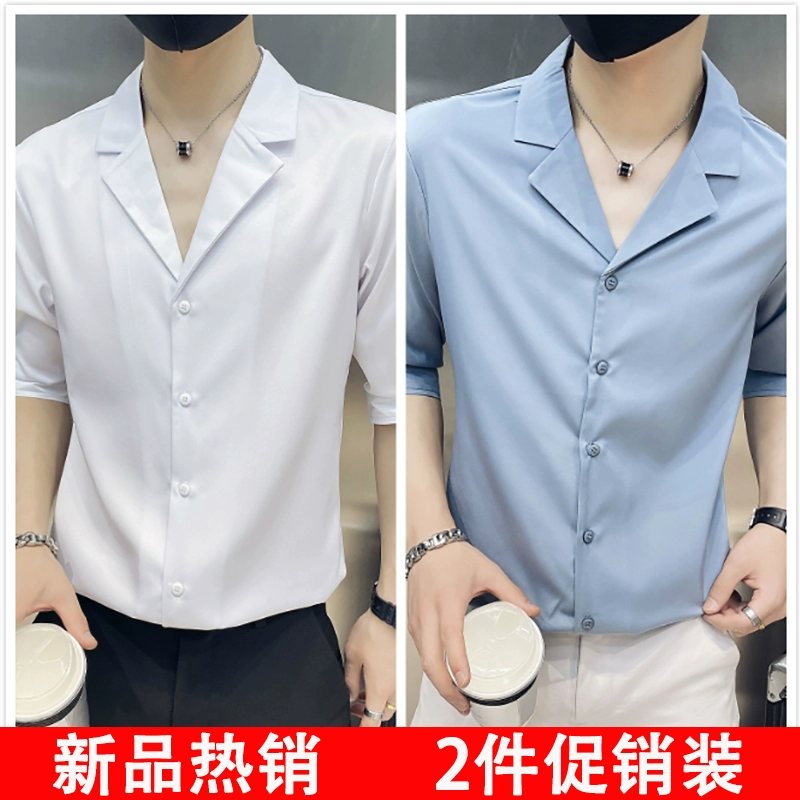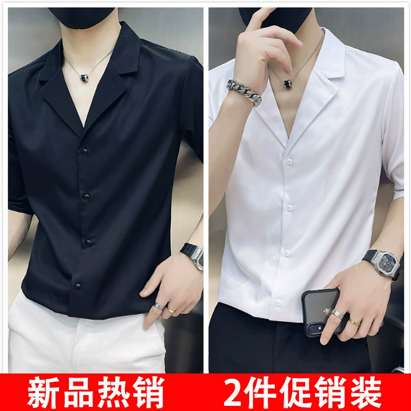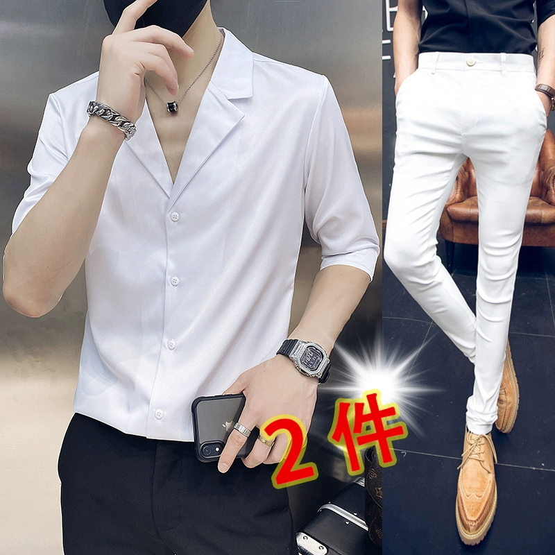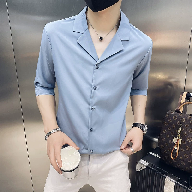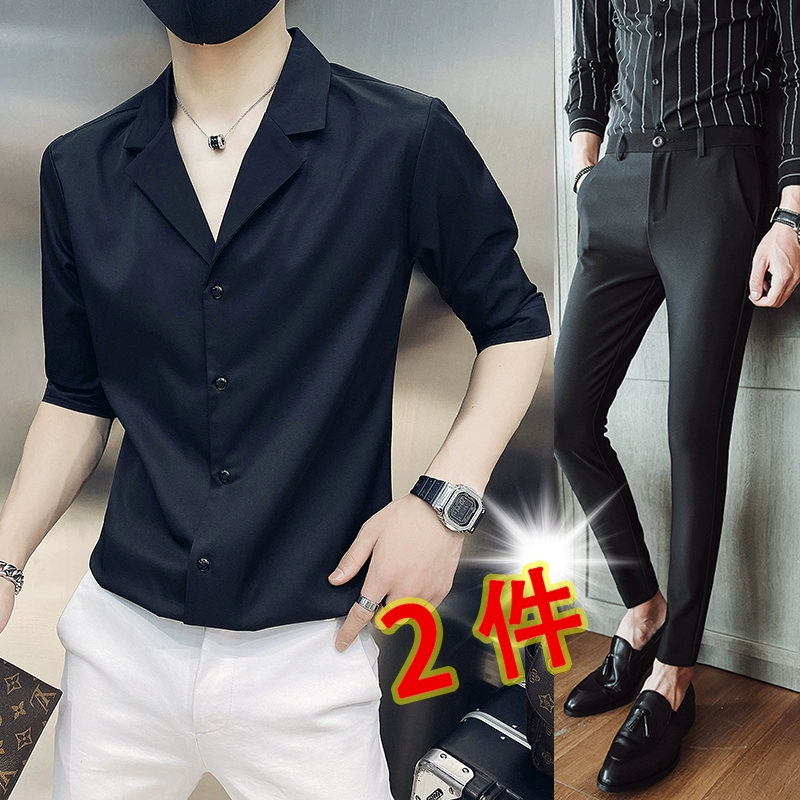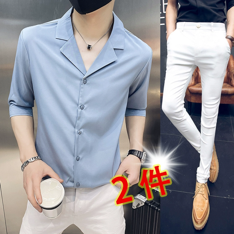 | nameOriginal | One-inch shirt, three-quarter sleeves, hairstylist V-neck handsome shirt |