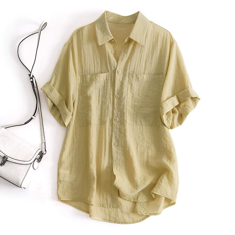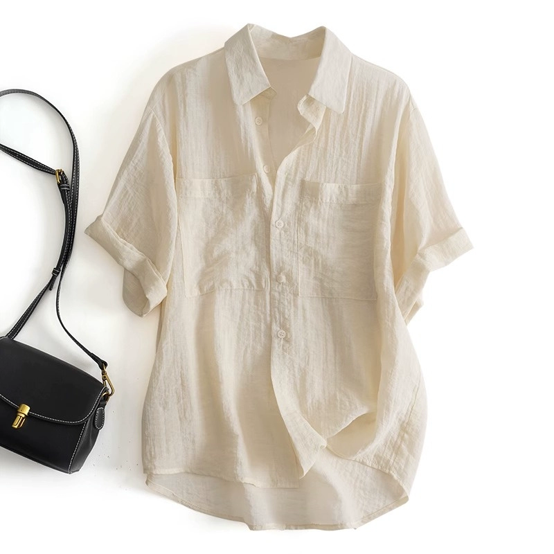 Lightweight and breathable lapel rolled hem Tencel pleated short sleeves