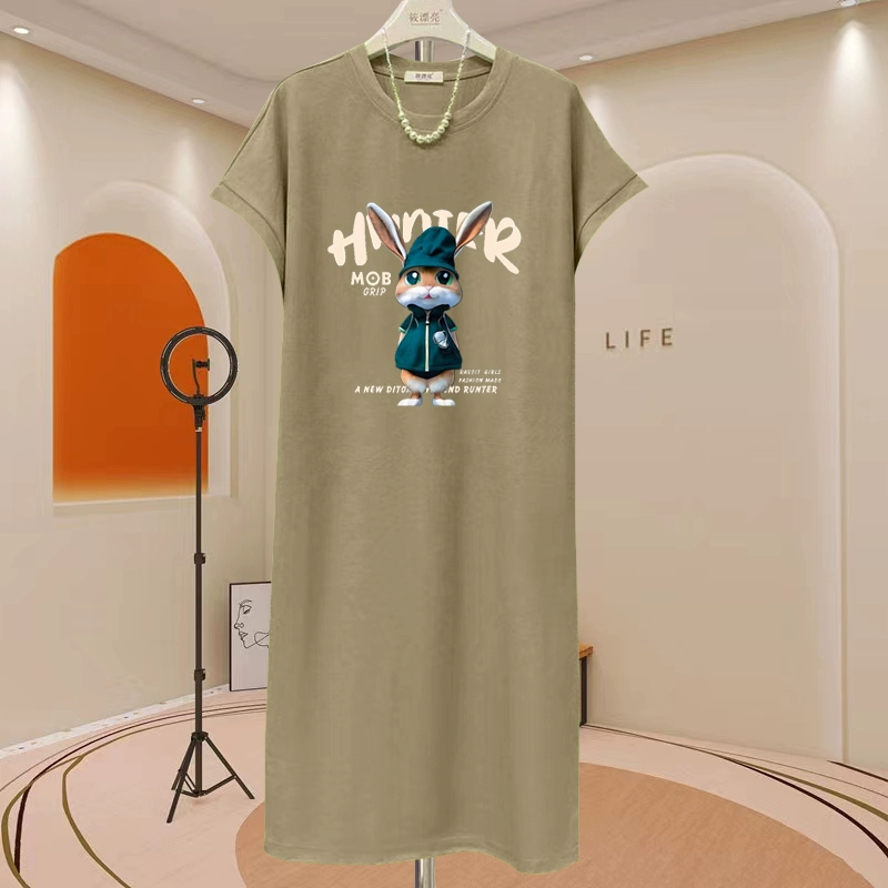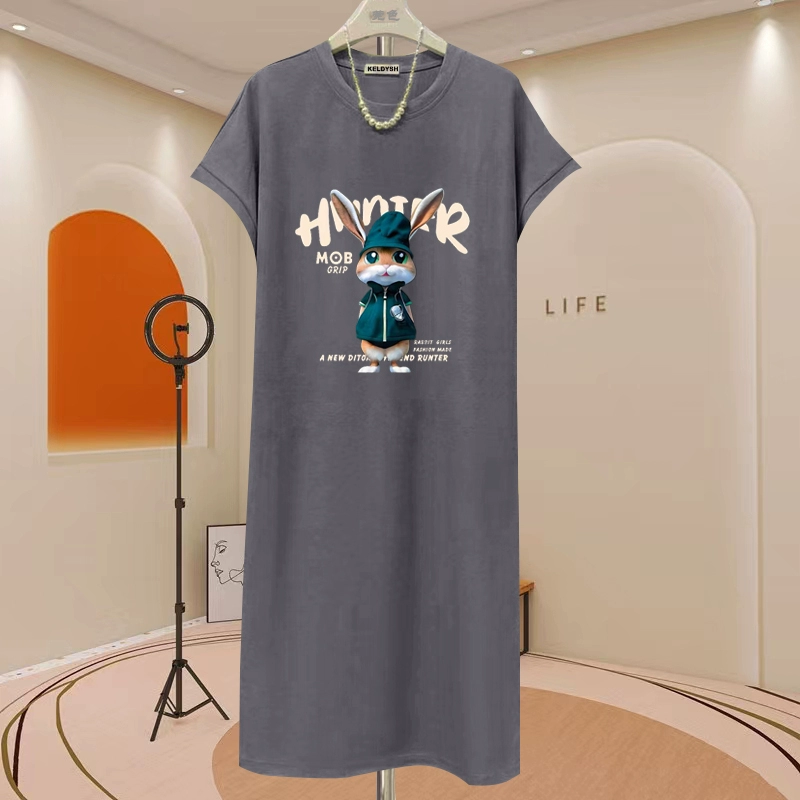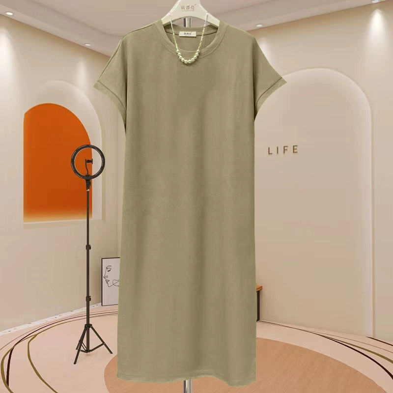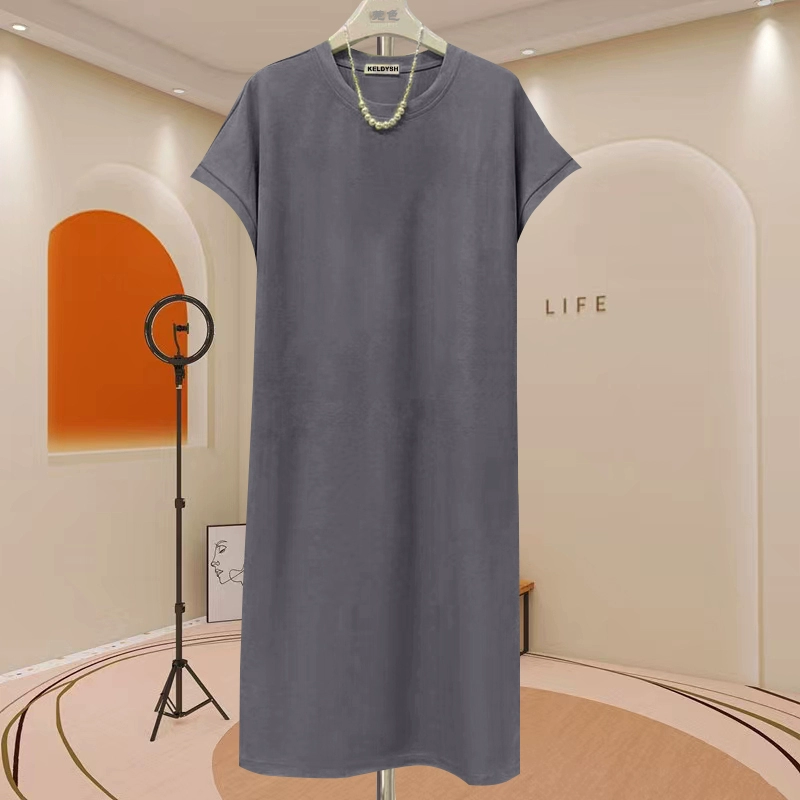 | nameOriginal | Dress Women's 2024 Summer New Loose Korean Style Resort Style Long Over-the-Knee Slit Casual Short-Sleeved T-Shirt Dress |