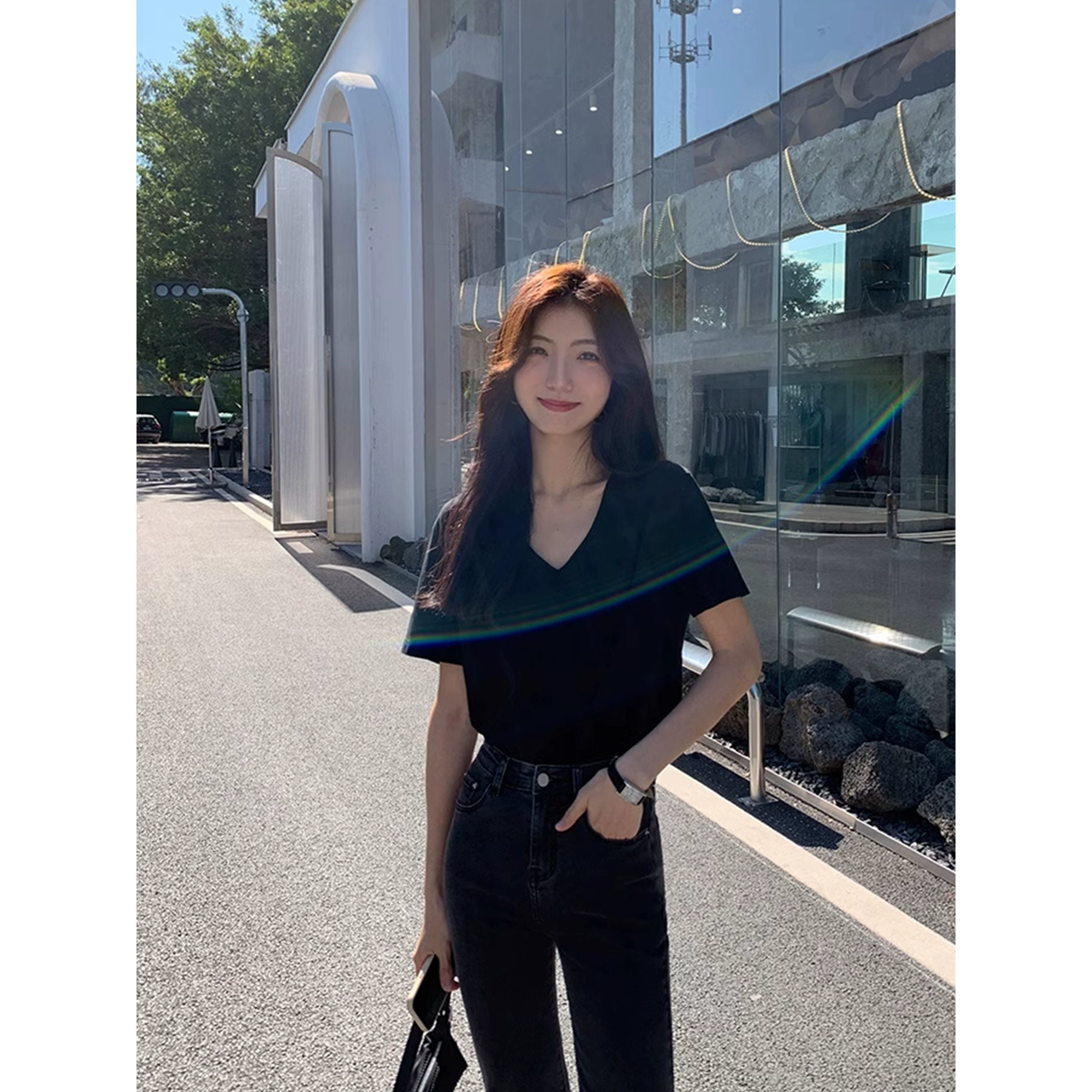 MULVAN spring and summer Korean style loose casual solid color T-shirt