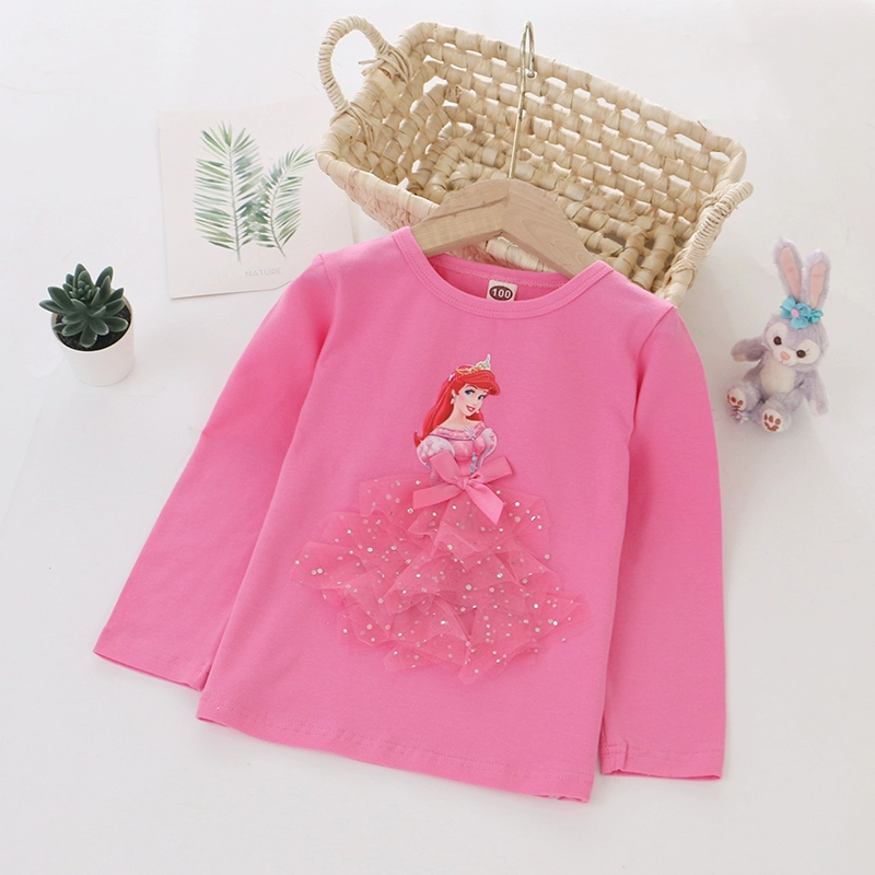 | nameOriginal | Girls pure cotton elastic three-dimensional princess long-sleeved T-shirt spring and autumn style children baby little girl cartoon round neck top |