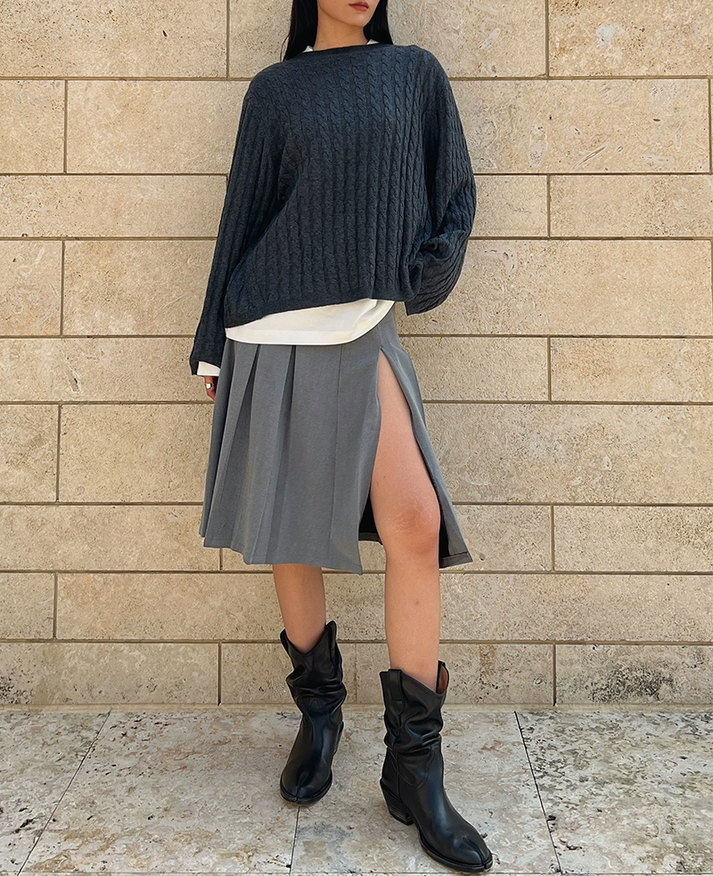 | nameOriginal | HIGHLIFE early autumn new style European and American street hotties high slit slim slim pleated skirt mid-length skirt |