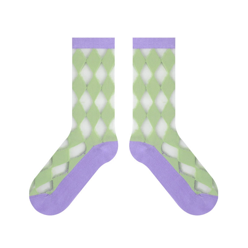 | nameOriginal | DAMAHOOV diamond love stripes ins style simple spring and summer ultra-thin socks glass silk women's mid-calf socks |