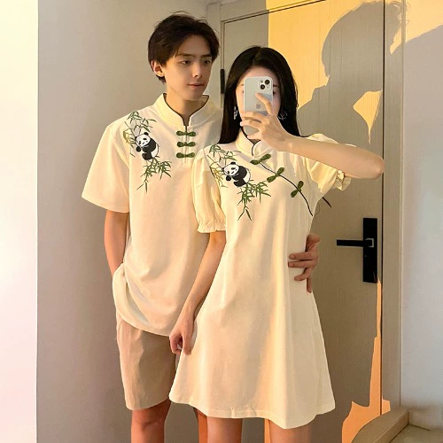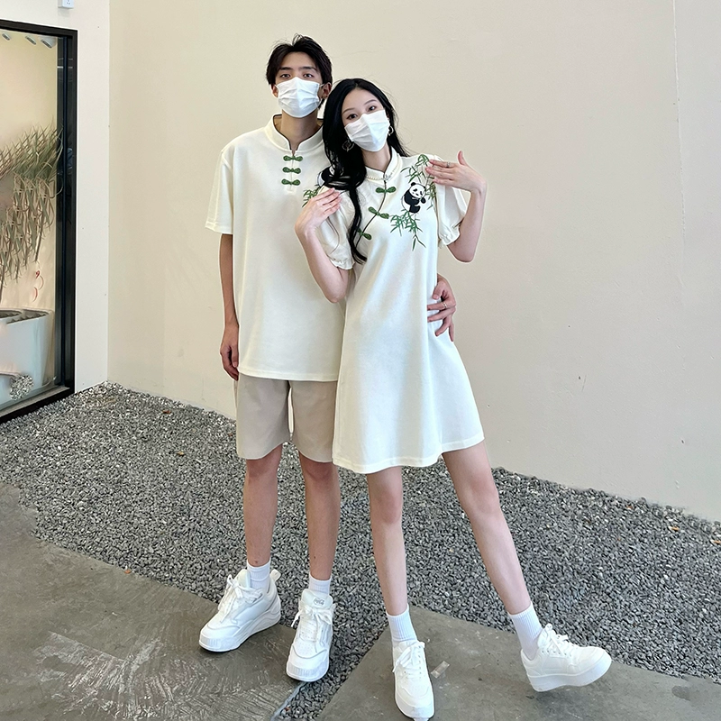 | nameOriginal | Literary national style retro polo shirt dress couple outfit |