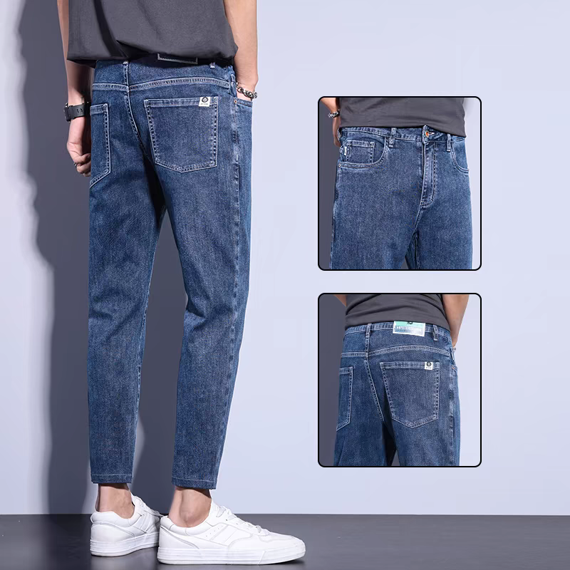 Jeans men's 2024 summer style trendy handsome slim fit anklet nine-point pants men's elastic versatile casual trousers