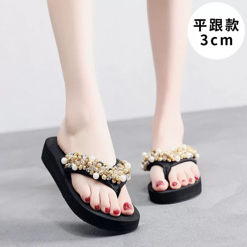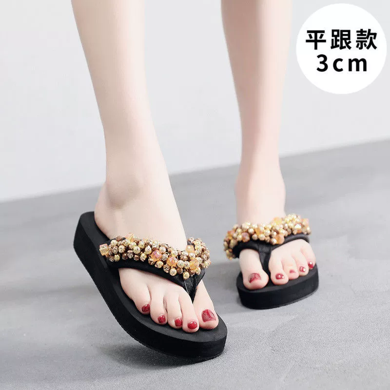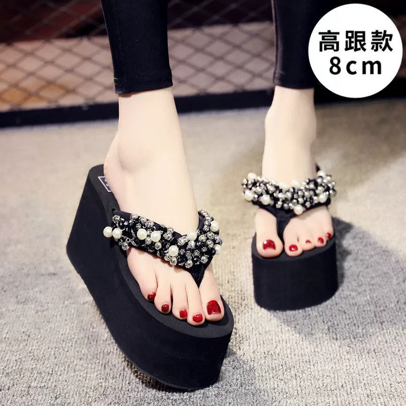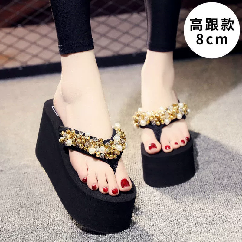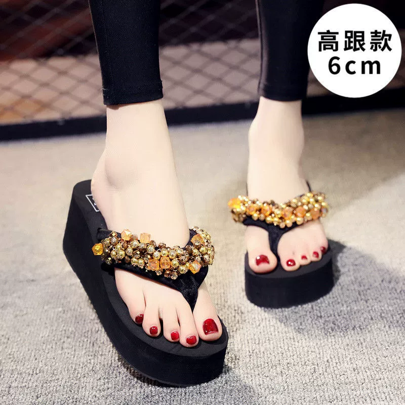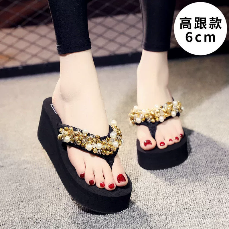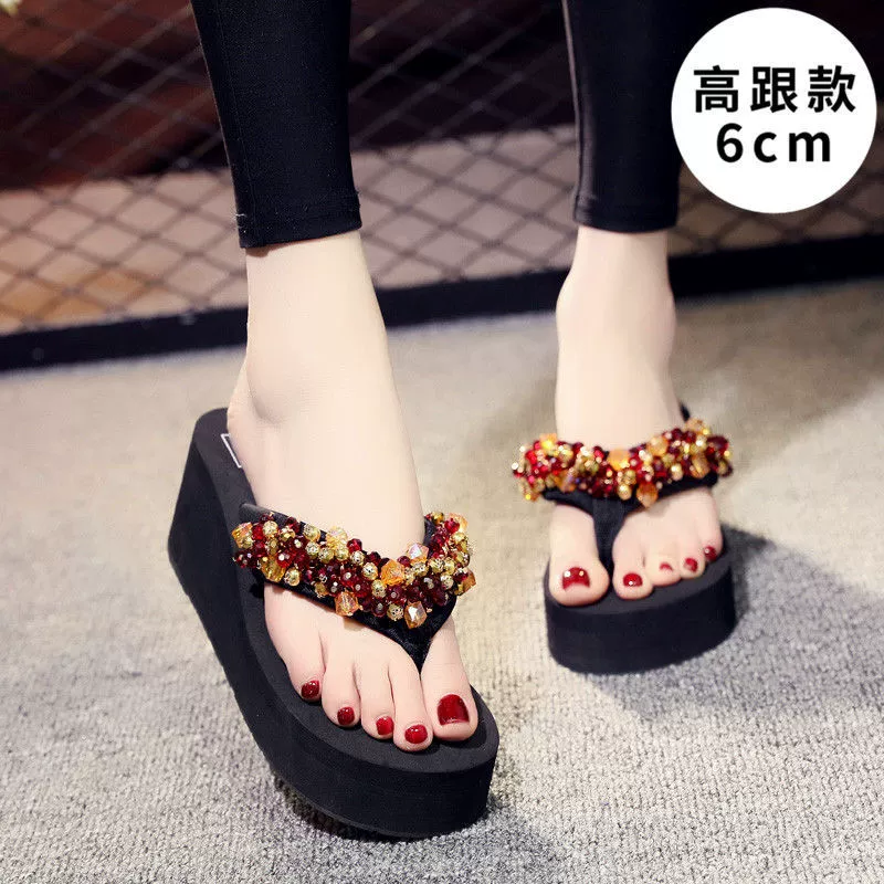 | nameOriginal | Thick-soled outer wear ins beach high-heeled flip-flops |