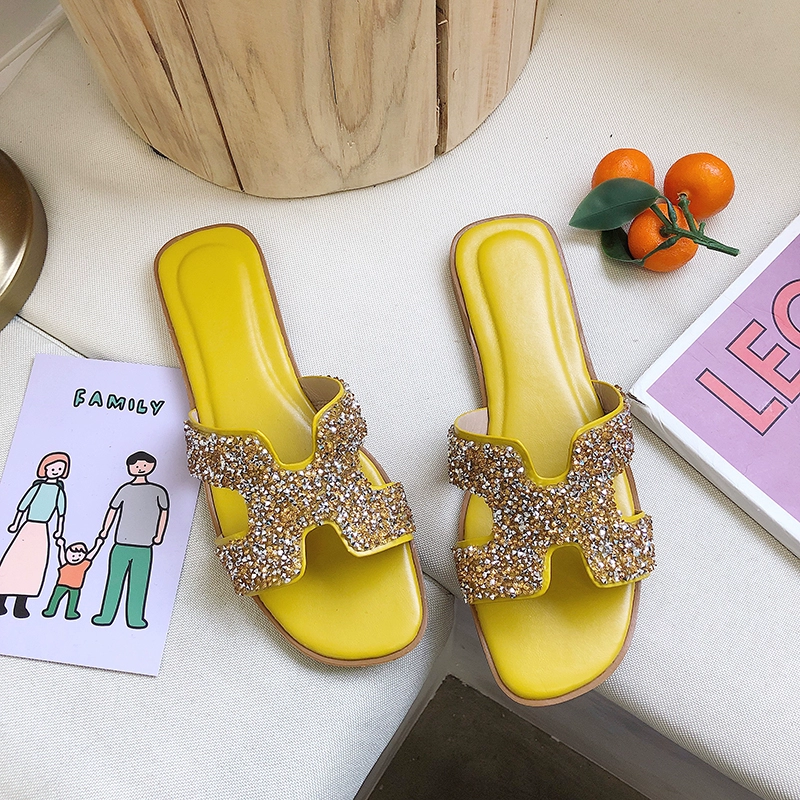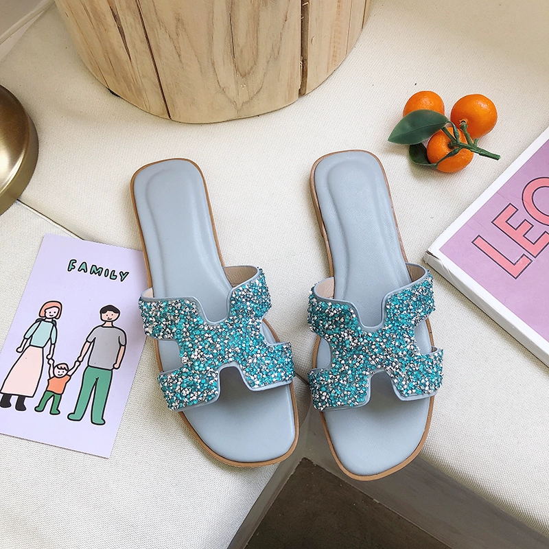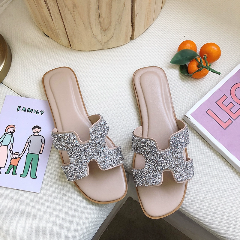 | nameOriginal | Fairy feng shui diamond pearl sandals for women's outer wear 2024 summer new style small flat beach sandals showing feet |