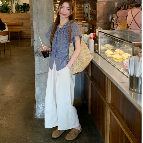 | nameOriginal | Textured puff sleeve top Japanese casual short shirt |
