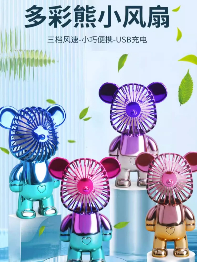 Cartoon violent bear small fan portable outdoor fan student dormitory charging model charging style mini fan