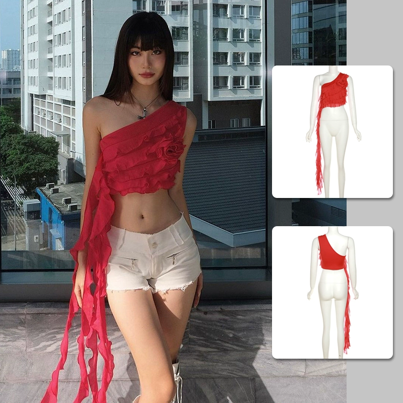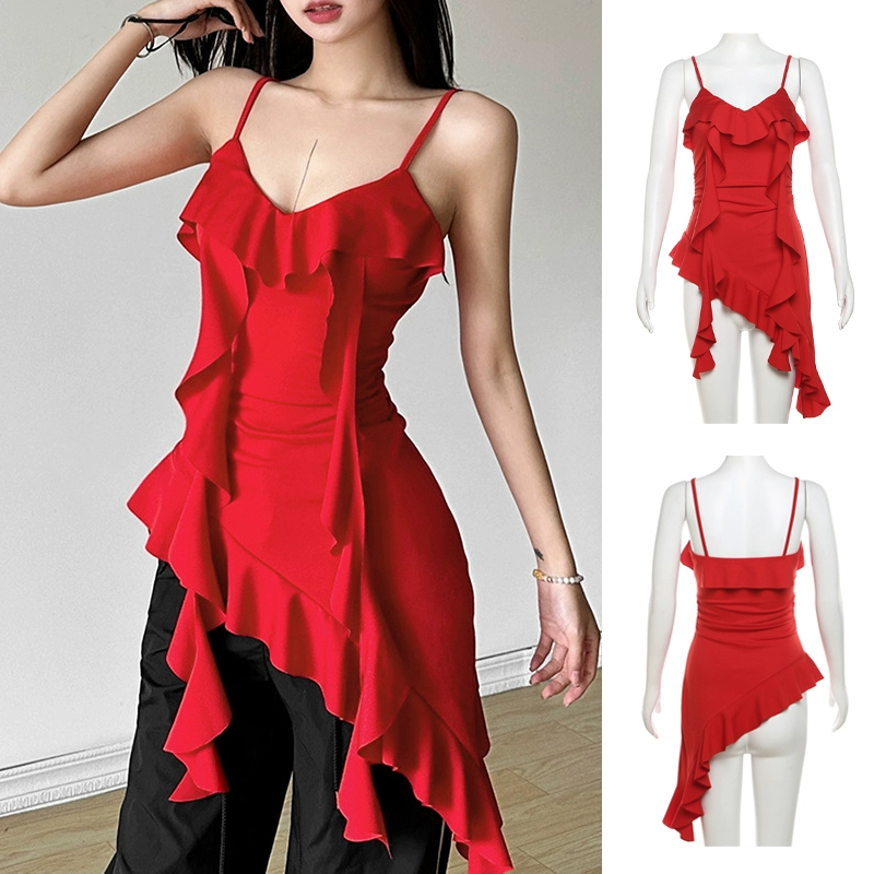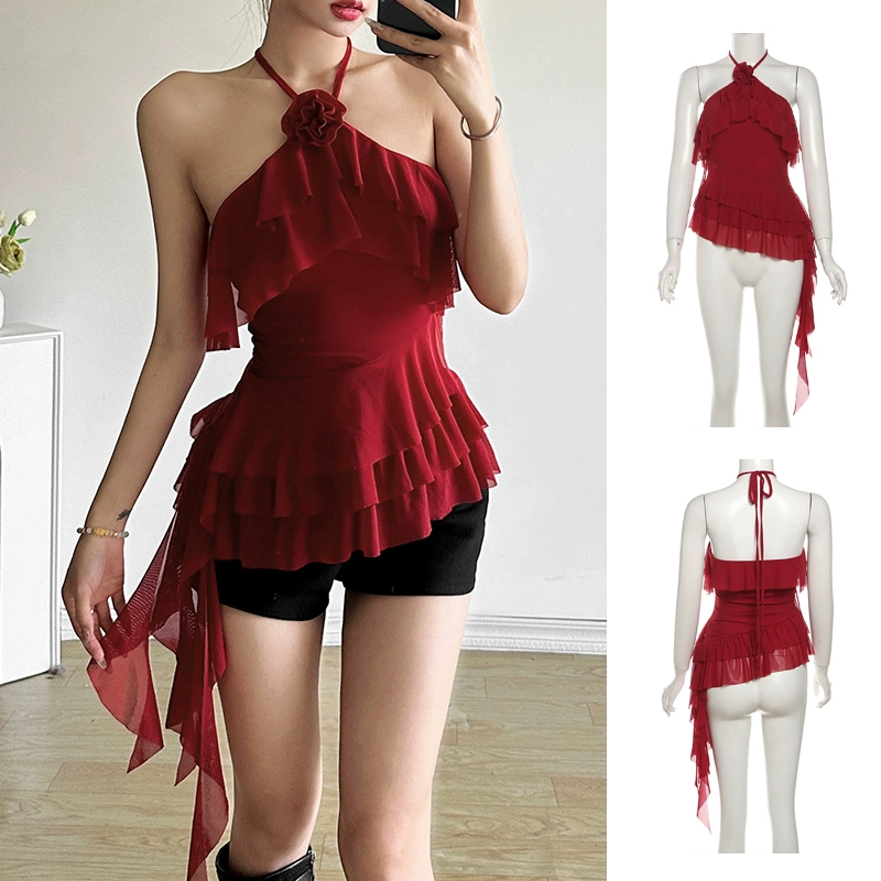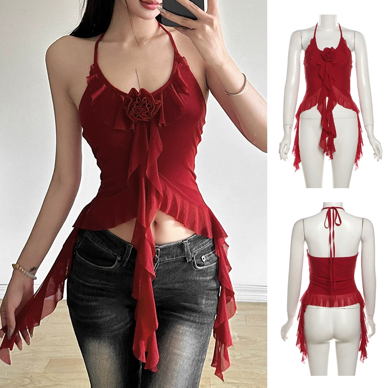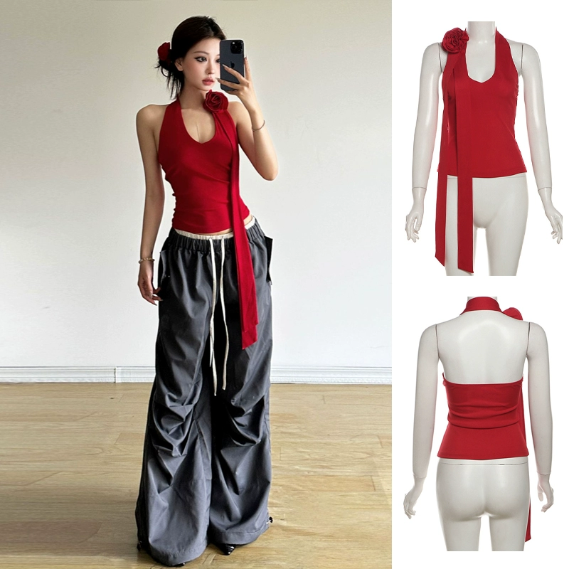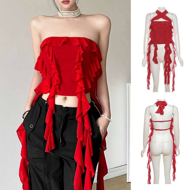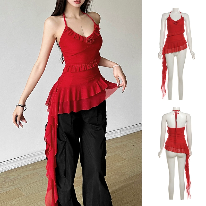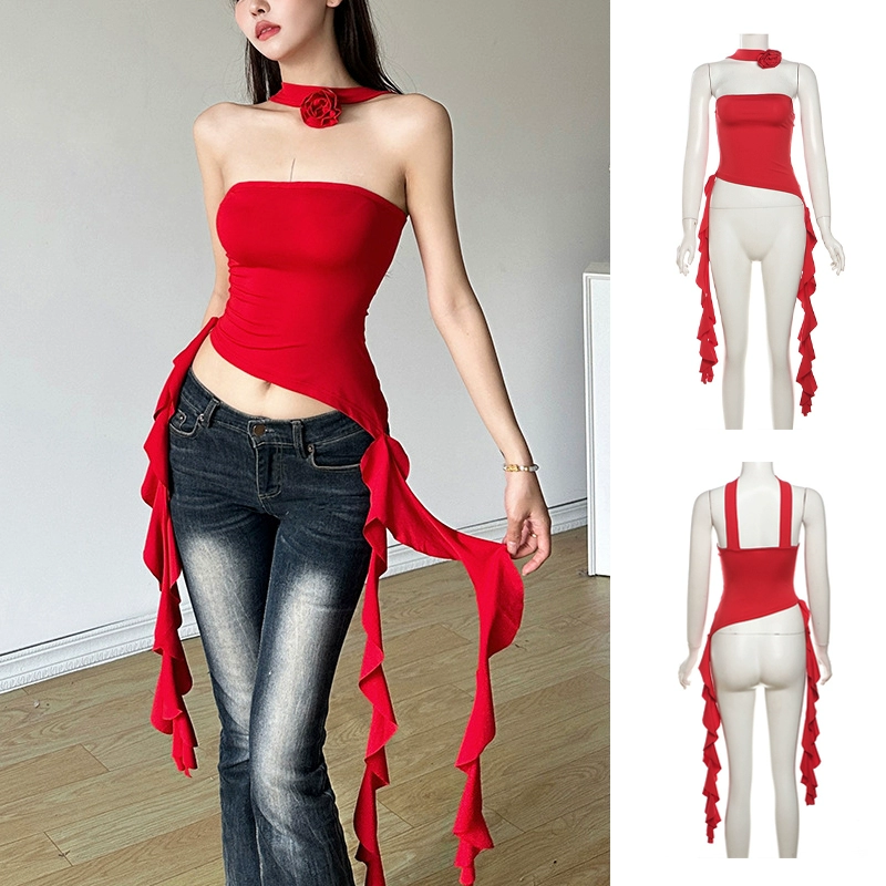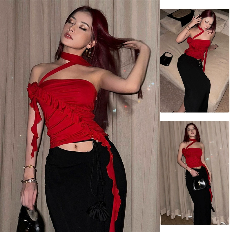| nameOriginal | Sexy hot girl red Thai-style small camisole women's summer outer wear design niche halterneck women's group streamer top |