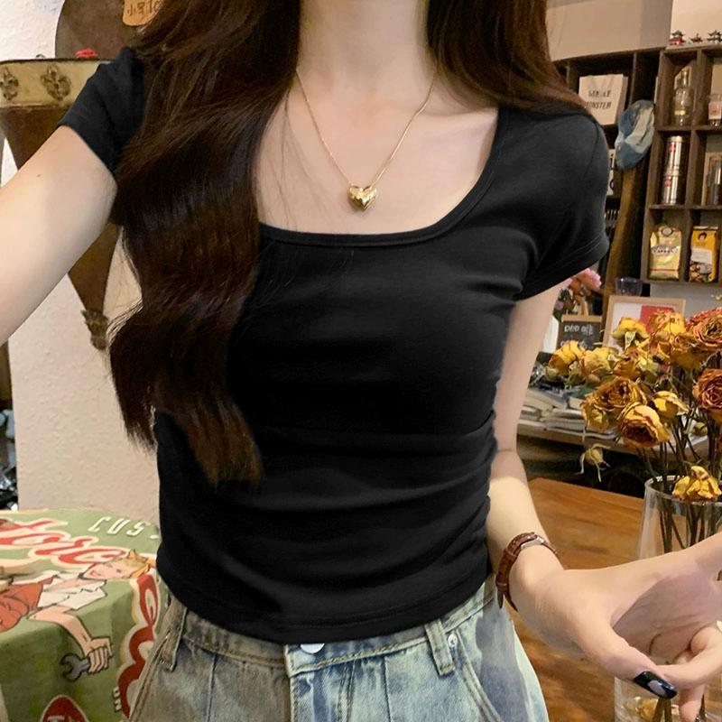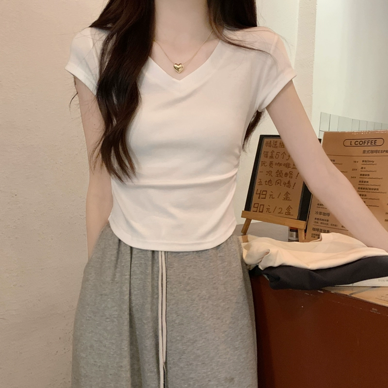 | nameOriginal | Women's Right Shoulder Summer White Slim Short Sleeve T-Shirt |
