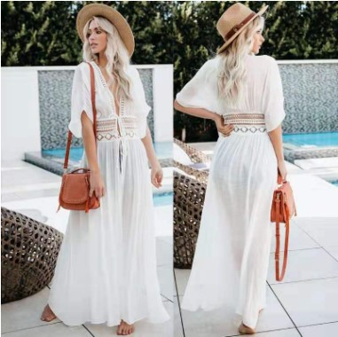 European and American Cross-border New Loose Large Size Seaside Vacation Swimwear Bikini Beach Blouse Slub Cotton Beach Dress